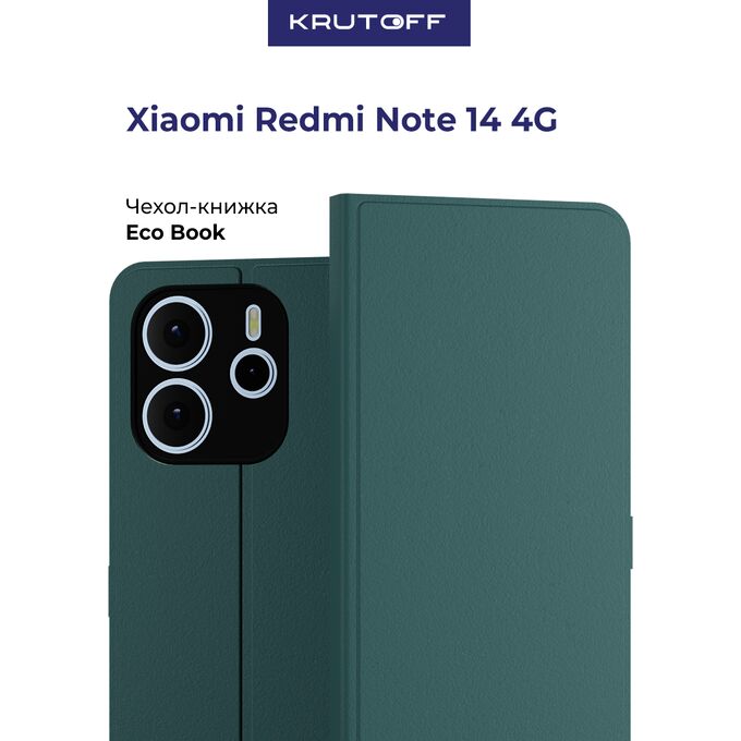 Чехол-книжка Krutoff Eco Book для Xiaomi Redmi Note 14 4G зелёный опал