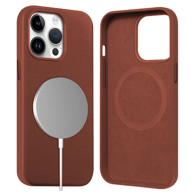 Чехол Leather Case MagSafe для iPhone 14 Pro 6.1", коричневый (1)