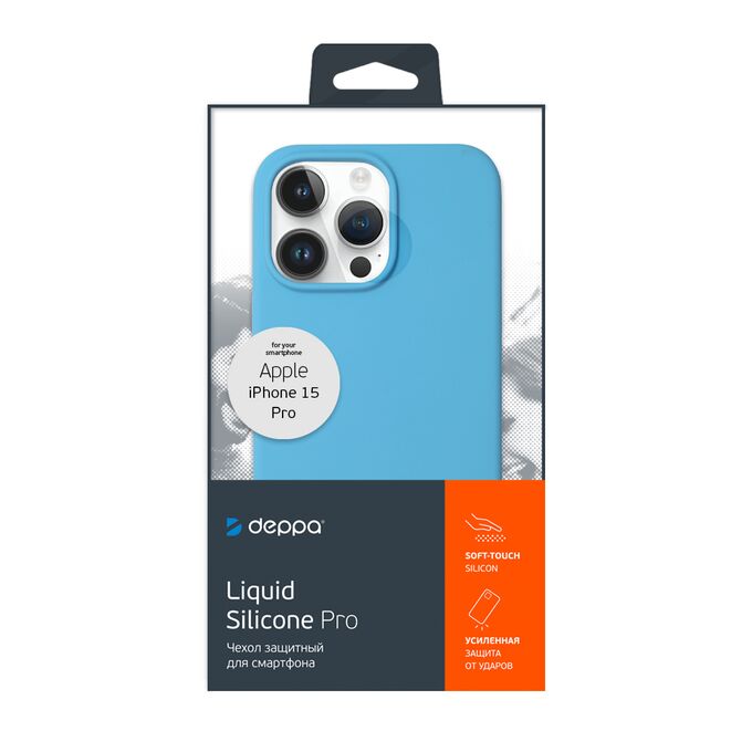Чехол Liquid Silicone Case Pro для Apple iPhone 15 Pro, голубой, Deppa, 88422