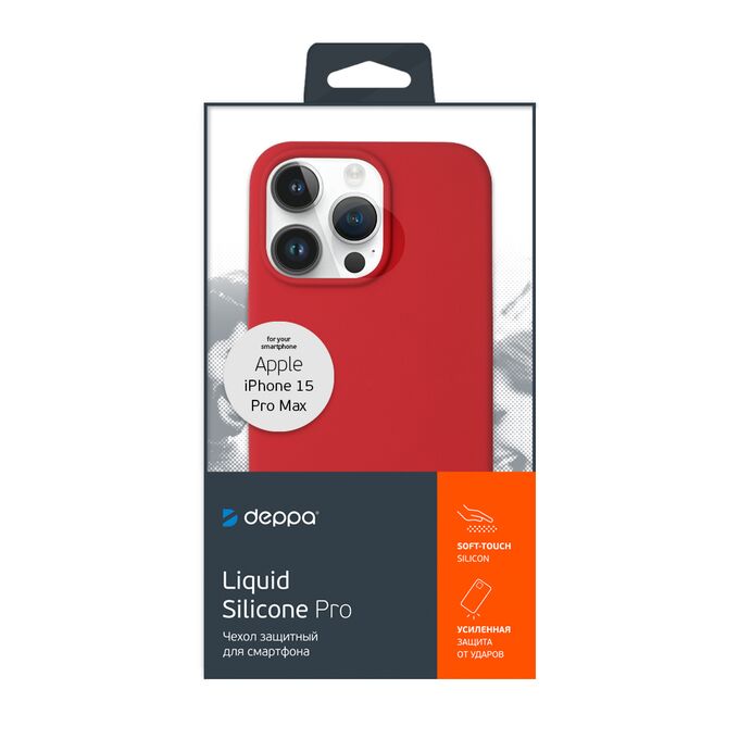 Чехол Liquid Silicone Case Pro для Apple iPhone 15 Pro Max, красный, Deppa, 88427