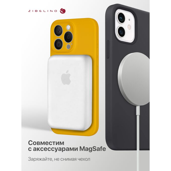 Чехол на iPhone 15 Pro Max с Magsafe, с защитой камеры, с мягкой подкладкой из микрофибры, противоударный, желтый (Айфон 15 Про Макс)
