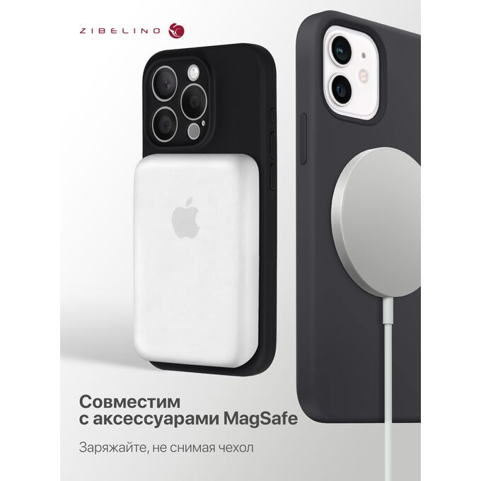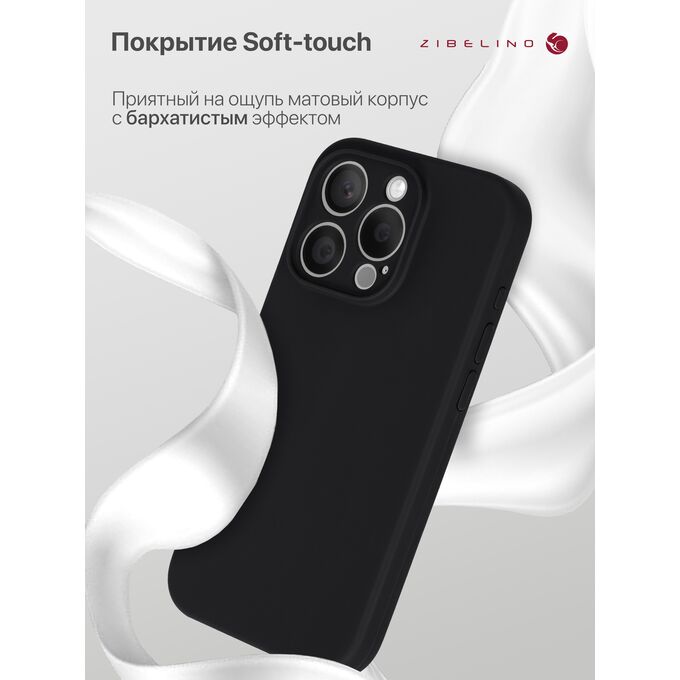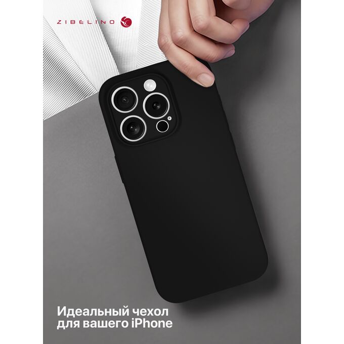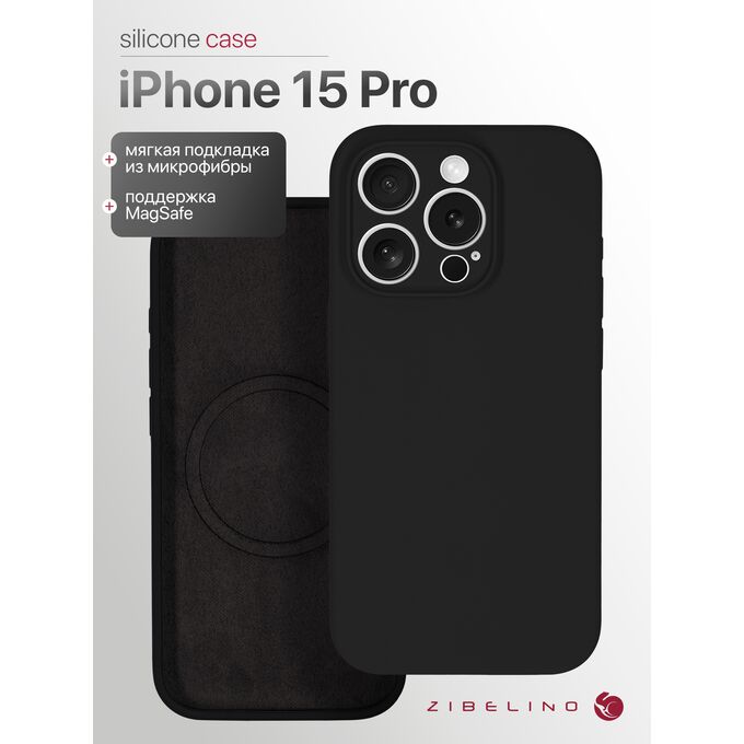 Чехол на iPhone 15 Pro с Magsafe, с защитой камеры, с мягкой подкладкой из микрофибры, противоударный, черный (Айфон 15 Про)