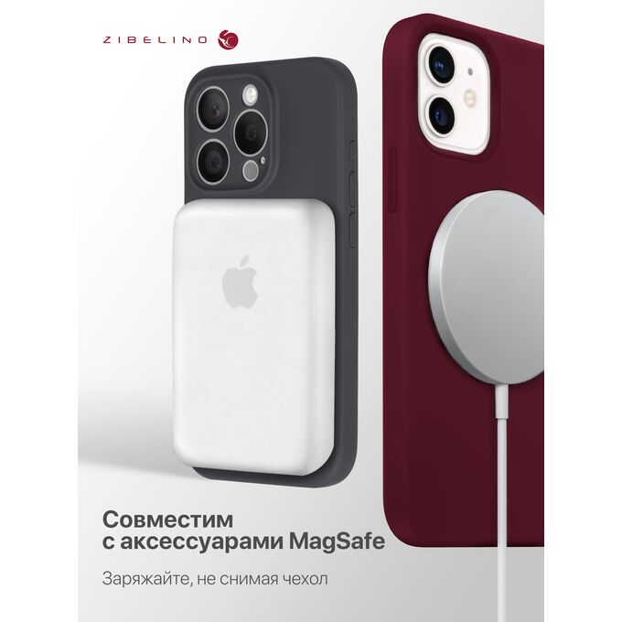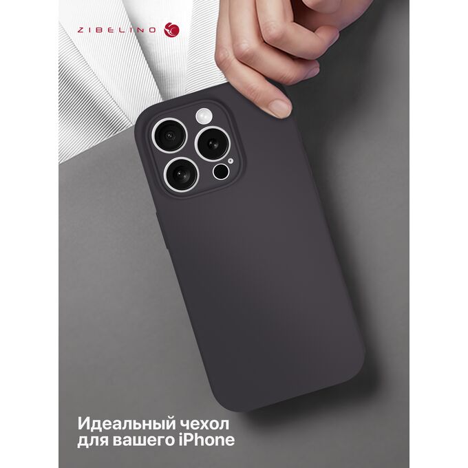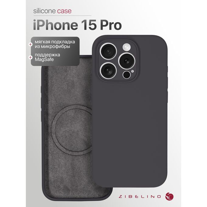 Чехол на iPhone 15 Pro с Magsafe, с защитой камеры, с мягкой подкладкой из микрофибры, противоударный, серый (Айфон 15 Про)
