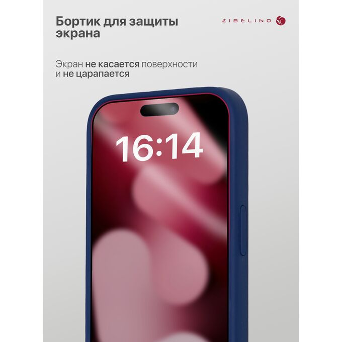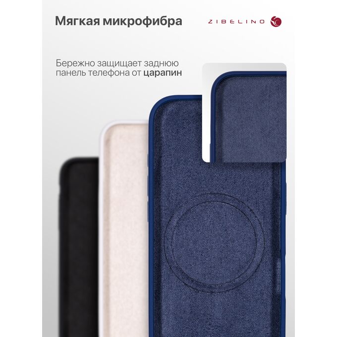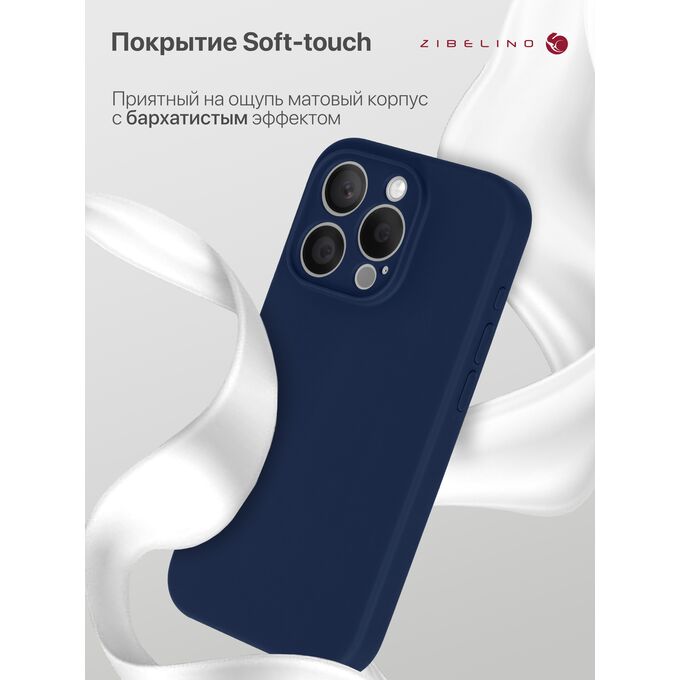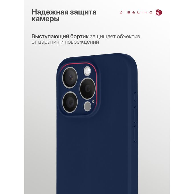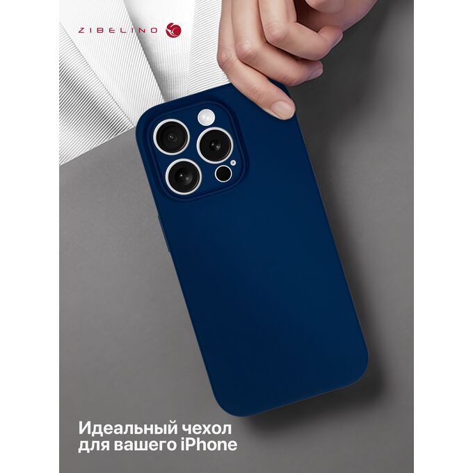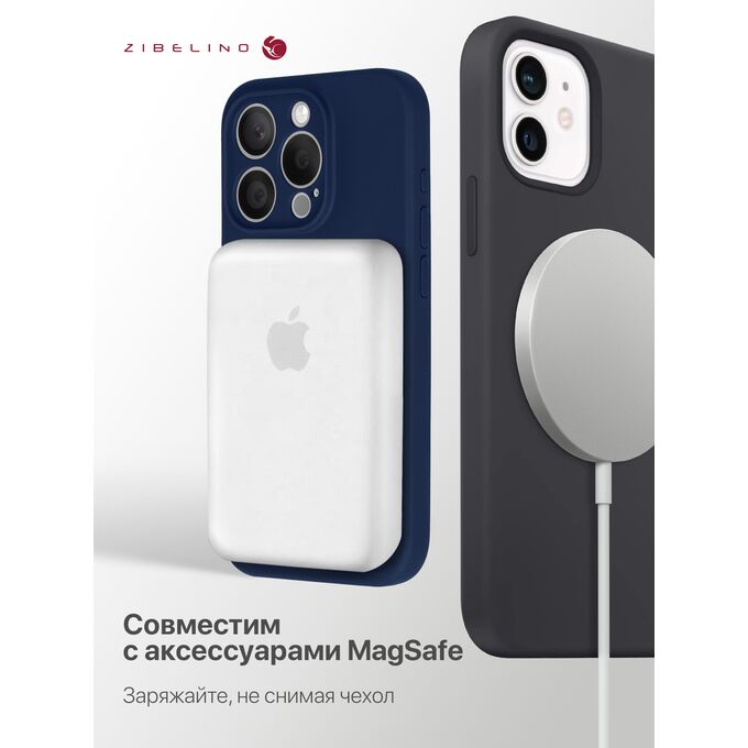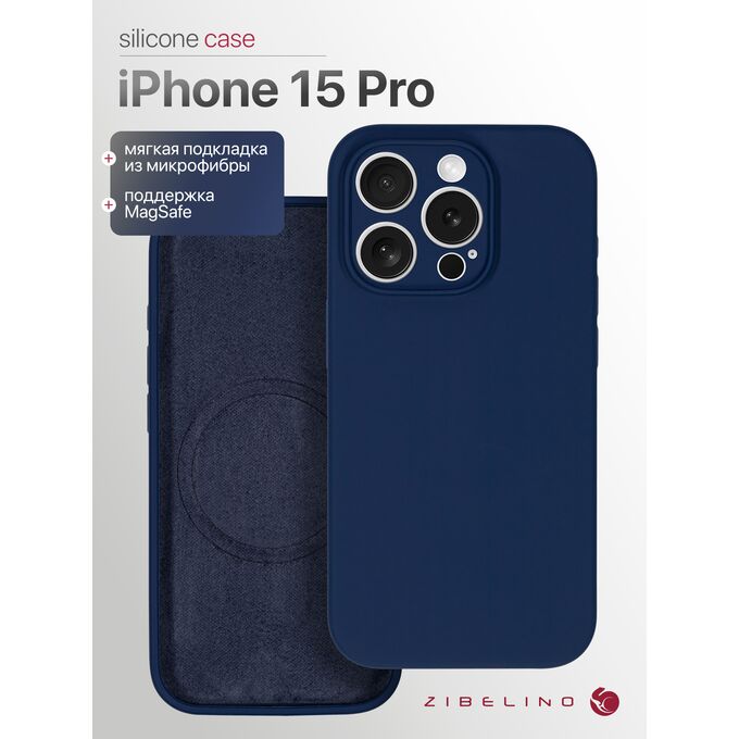 Чехол на iPhone 15 Pro с Magsafe, с защитой камеры, с мягкой подкладкой из микрофибры, противоударный, темно-синий (Айфон 15 Про)