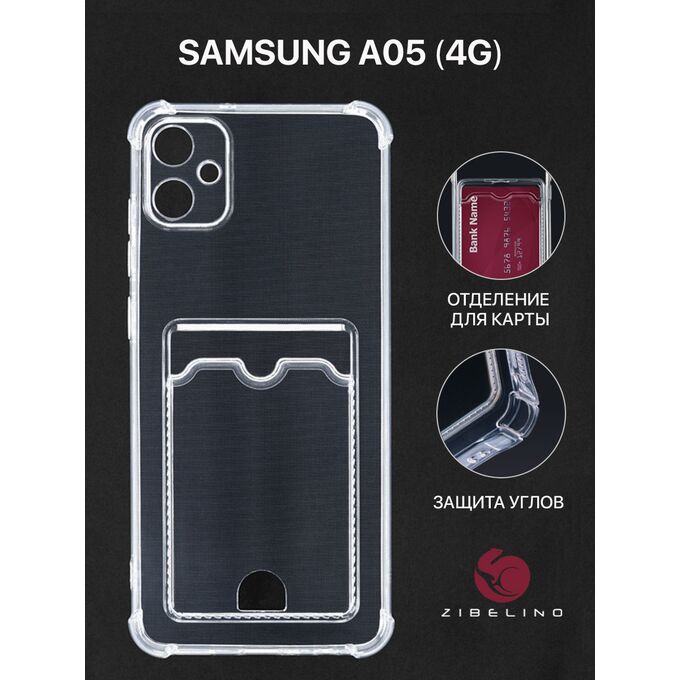 Чехол силиконовый Card Holder для Samsung Galaxy A05 (4G) с карманом, с картхолдером, с защитой камеры, прозрачный (Самсунг Галакси А05)