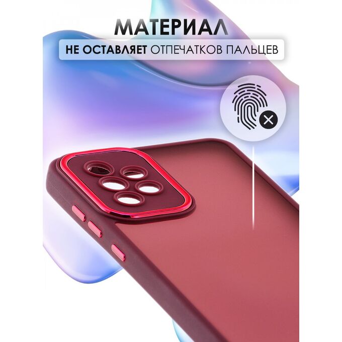 Чехол накладка для Samsung Galaxy A52 Kruche Camera Shine матовый, красный, защитный силиконовый бампер, противоударный пластиковый кейс с защитой камеры