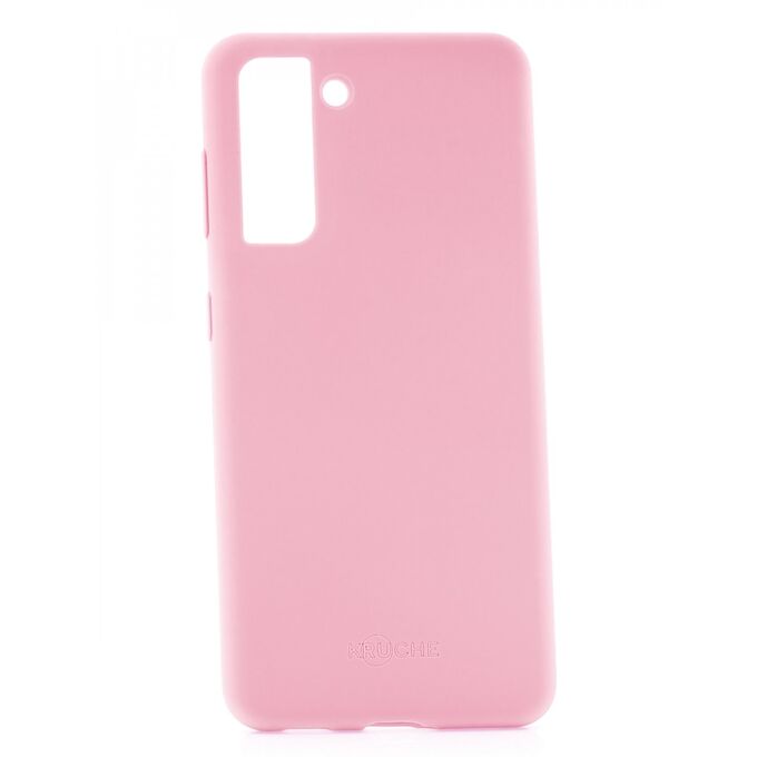 Чехол накладка для Samsung Galaxy S21 Kruche Silicone Plain розовый, защитный силиконовый бампер, противоударный кейс с защитой камеры