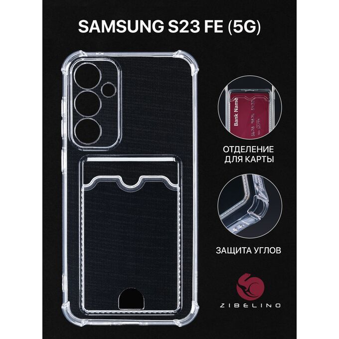 Чехол силиконовый Card Holder для Samsung S23 FE (5G) с картхолдером, с защитой камеры, прозрачный (Самсунг Галакси S23 FE)