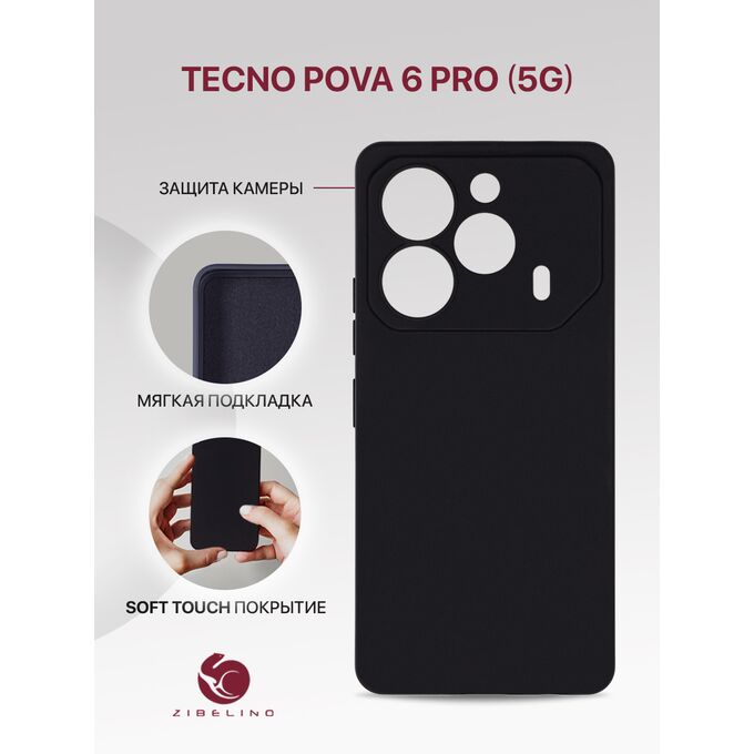 Чехол Soft для Tecno Pova 6 Pro (5G), Pova 6 (4G) с защитой камеры, с мягкой подкладкой из микрофибры, противоударный, черный, Техно Пова 6 Про 5G