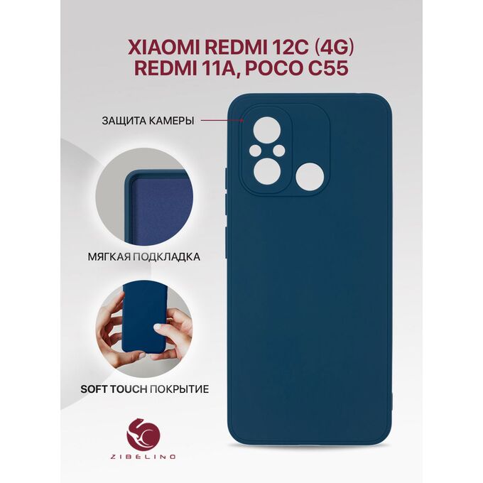 Чехол накладка для Xiaomi Redmi 12C 4G, 11A, Poco C55 с мягкой подкладкой из микрофибры, софт, противоударный, синий (Сяоми Редми 12С 11А Поко С55)