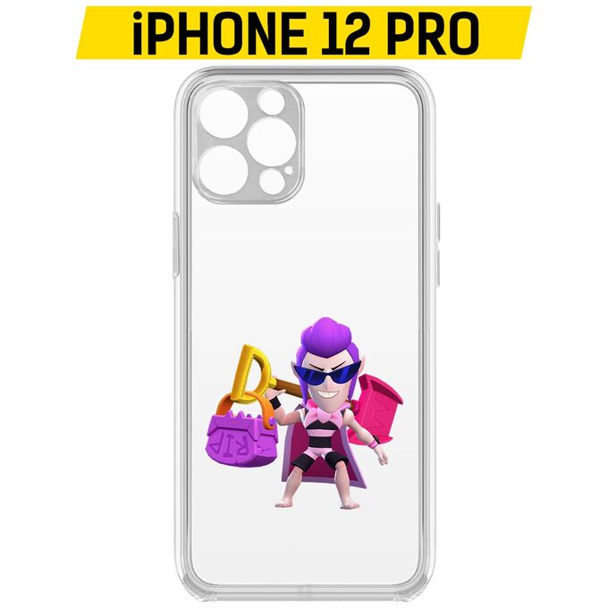 Чехол-накладка Krutoff Clear Case Brawl Stars-Пляжный Мортис для iPhone 12 Pro с защитой камеры