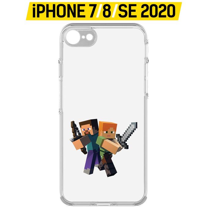 Чехол-накладка Krutoff Clear Case Minecraft-Стив и Алекс для iPhone 7/8/SE 2020 с защитой камеры