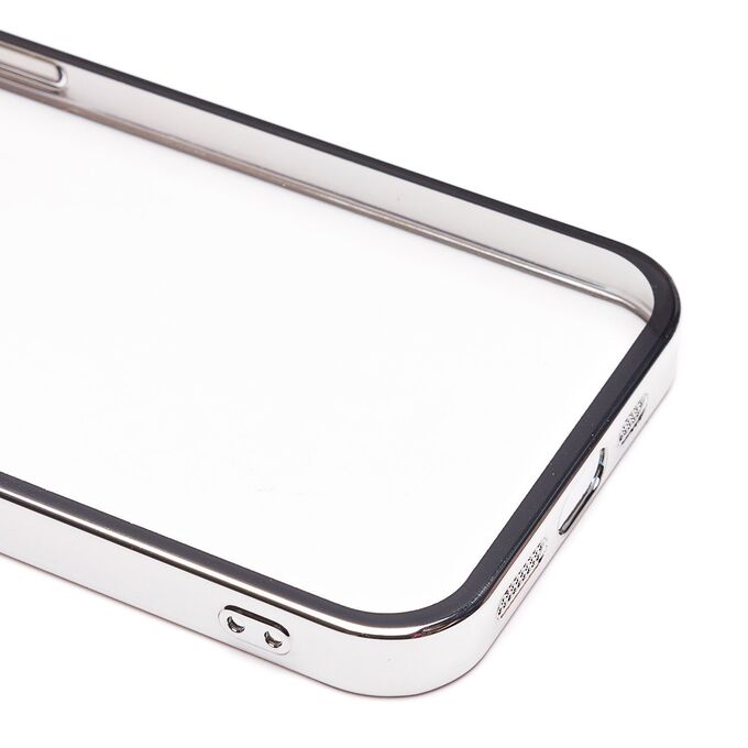 Прозрачный защитный чехол с цветной рамкой PC073 на Apple iPhone 12 Pro Max/ Накладка с защитой камеры (+накладки на линзы в комплекте)/ серебро