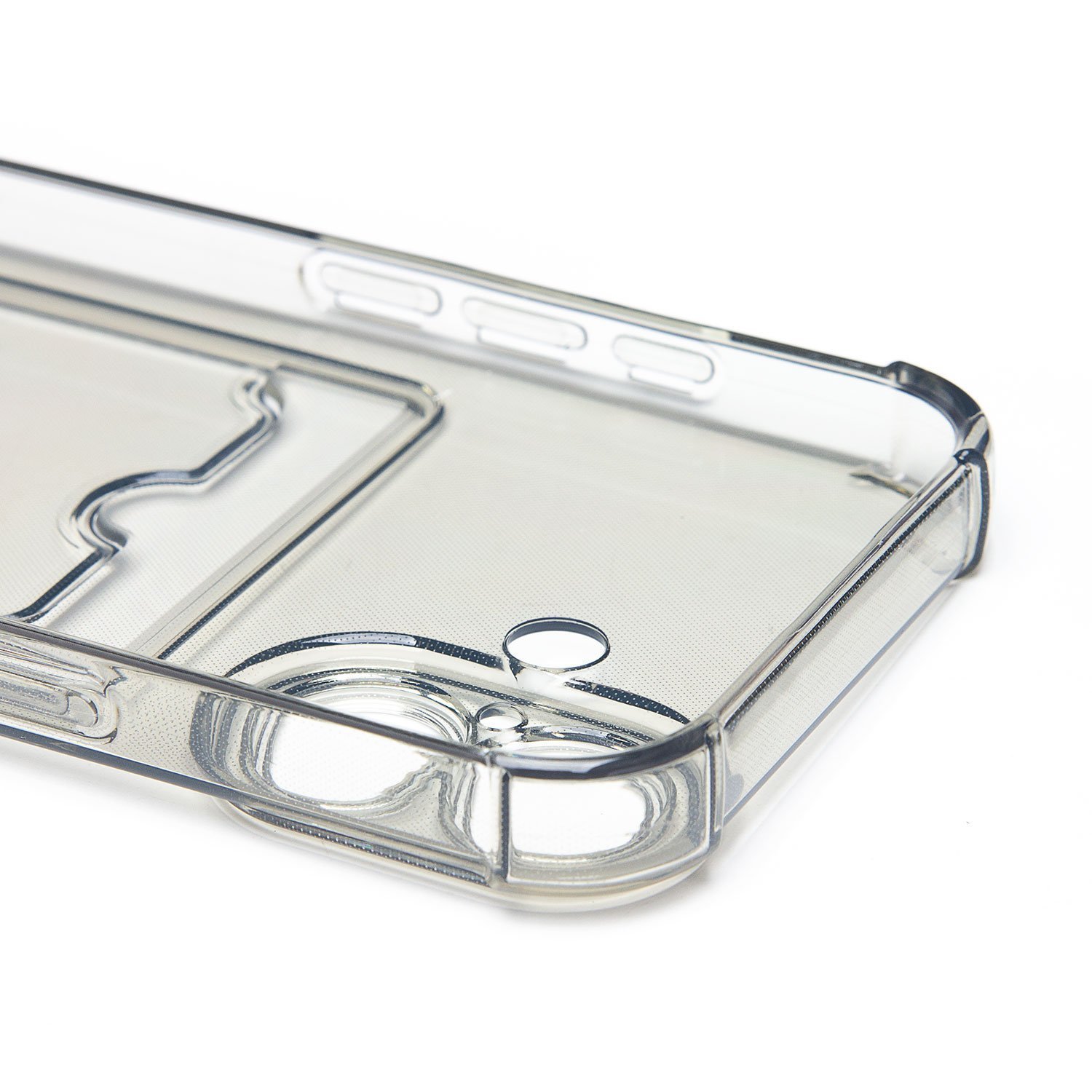 Противоударный силиконовый чехол с картхолдером, прозрачный – ХИТ продаж! Хотите защитить свой телефон и подчеркнуть его стильный дизайн? Этот чехол - именно то, что Вам нужно! Наш силиконовый чехол для телефона — это надежная защита Вашего устройства, сочетающая в себе уникальный стиль и функциональность. Прозрачный материал позволяет полностью наслаждаться дизайном Вашего телефона. Наличие картхолдера позволит Вам удобно хранить кредитные карты или деньги, не беспокоясь о том, что они потеряются. Усиленные углы и защита камеры обеспечат дополнительную защиту от падений и ударов. Кроме того, на данном чехле есть специальный вырез на кармашке для удобного доступа к карточкам. Этот вырез имеет оптимальный размер, что позволяет быстро и легко доставать карты одним движением пальца. Таким образом, наш чехол сочетает в себе не только защиту для телефона, но и удобство для владельца. Если тебе нужна надежная защита для своего телефона, то наш новый чехол - отличный выбор!