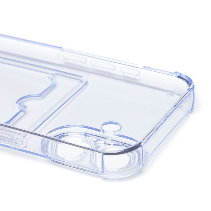 Противоударный силиконовый чехол с картхолдером, прозрачный – ХИТ продаж! Хотите защитить свой телефон и подчеркнуть его стильный дизайн? Этот чехол - именно то, что Вам нужно! Наш силиконовый чехол для телефона — это надежная защита Вашего устройства, сочетающая в себе уникальный стиль и функциональность. Прозрачный материал позволяет полностью наслаждаться дизайном Вашего телефона. Наличие картхолдера позволит Вам удобно хранить кредитные карты или деньги, не беспокоясь о том, что они потеряются. Усиленные углы и защита камеры обеспечат дополнительную защиту от падений и ударов. Кроме того, на данном чехле есть специальный вырез на кармашке для удобного доступа к карточкам. Этот вырез имеет оптимальный размер, что позволяет быстро и легко доставать карты одним движением пальца. Таким образом, наш чехол сочетает в себе не только защиту для телефона, но и удобство для владельца. Если тебе нужна надежная защита для своего телефона, то наш новый чехол - отличный выбор!
