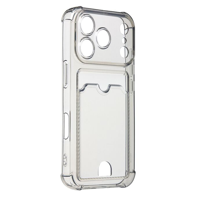 Противоударный силиконовый чехол с картхолдером, прозрачный – ХИТ продаж! Хотите защитить свой телефон и подчеркнуть его стильный дизайн? Этот чехол - именно то, что Вам нужно! Наш силиконовый чехол для телефона — это надежная защита Вашего устройства, сочетающая в себе уникальный стиль и функциональность. Прозрачный материал позволяет полностью наслаждаться дизайном Вашего телефона. Наличие картхолдера позволит Вам удобно хранить кредитные карты или деньги, не беспокоясь о том, что они потеряются. Усиленные углы и защита камеры обеспечат дополнительную защиту от падений и ударов. Кроме того, на данном чехле есть специальный вырез на кармашке для удобного доступа к карточкам. Этот вырез имеет оптимальный размер, что позволяет быстро и легко доставать карты одним движением пальца. Таким образом, наш чехол сочетает в себе не только защиту для телефона, но и удобство для владельца. Если тебе нужна надежная защита для своего телефона, то наш новый чехол - отличный выбор!