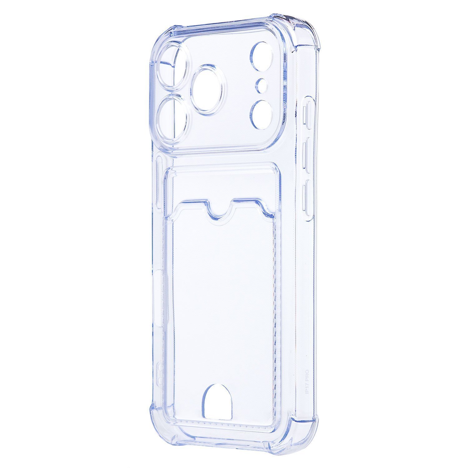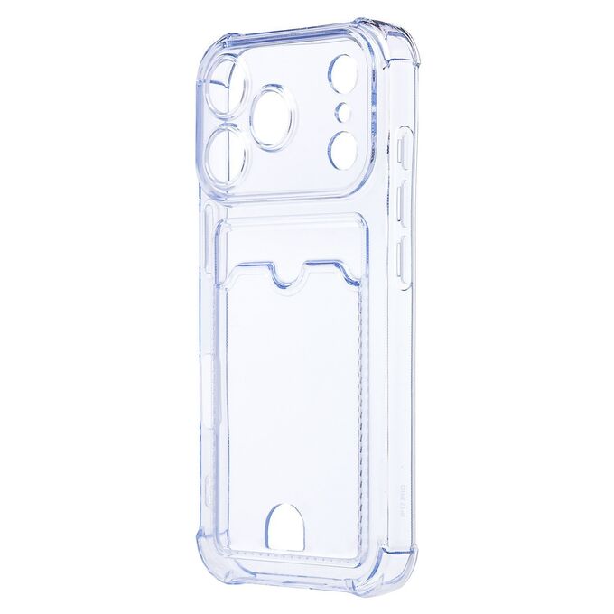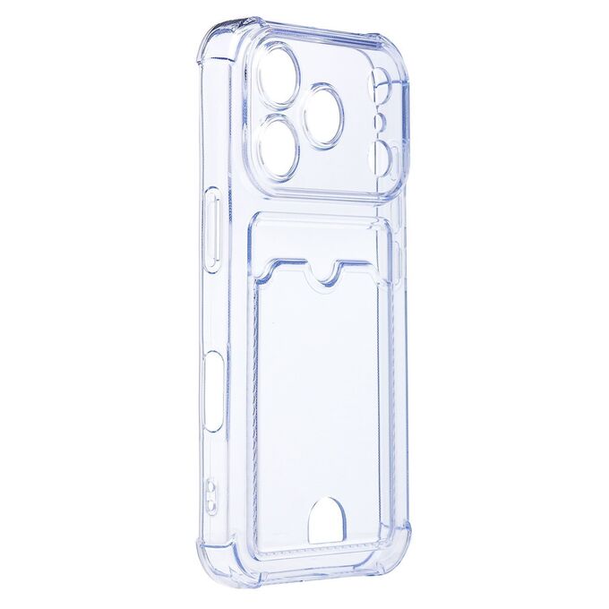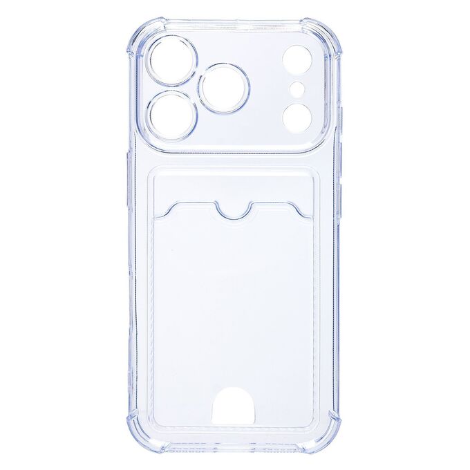 Противоударный силиконовый чехол с картхолдером, прозрачный – ХИТ продаж! Хотите защитить свой телефон и подчеркнуть его стильный дизайн? Этот чехол - именно то, что Вам нужно! Наш силиконовый чехол для телефона — это надежная защита Вашего устройства, сочетающая в себе уникальный стиль и функциональность. Прозрачный материал позволяет полностью наслаждаться дизайном Вашего телефона. Наличие картхолдера позволит Вам удобно хранить кредитные карты или деньги, не беспокоясь о том, что они потеряются. Усиленные углы и защита камеры обеспечат дополнительную защиту от падений и ударов. Кроме того, на данном чехле есть специальный вырез на кармашке для удобного доступа к карточкам. Этот вырез имеет оптимальный размер, что позволяет быстро и легко доставать карты одним движением пальца. Таким образом, наш чехол сочетает в себе не только защиту для телефона, но и удобство для владельца. Если тебе нужна надежная защита для своего телефона, то наш новый чехол - отличный выбор!