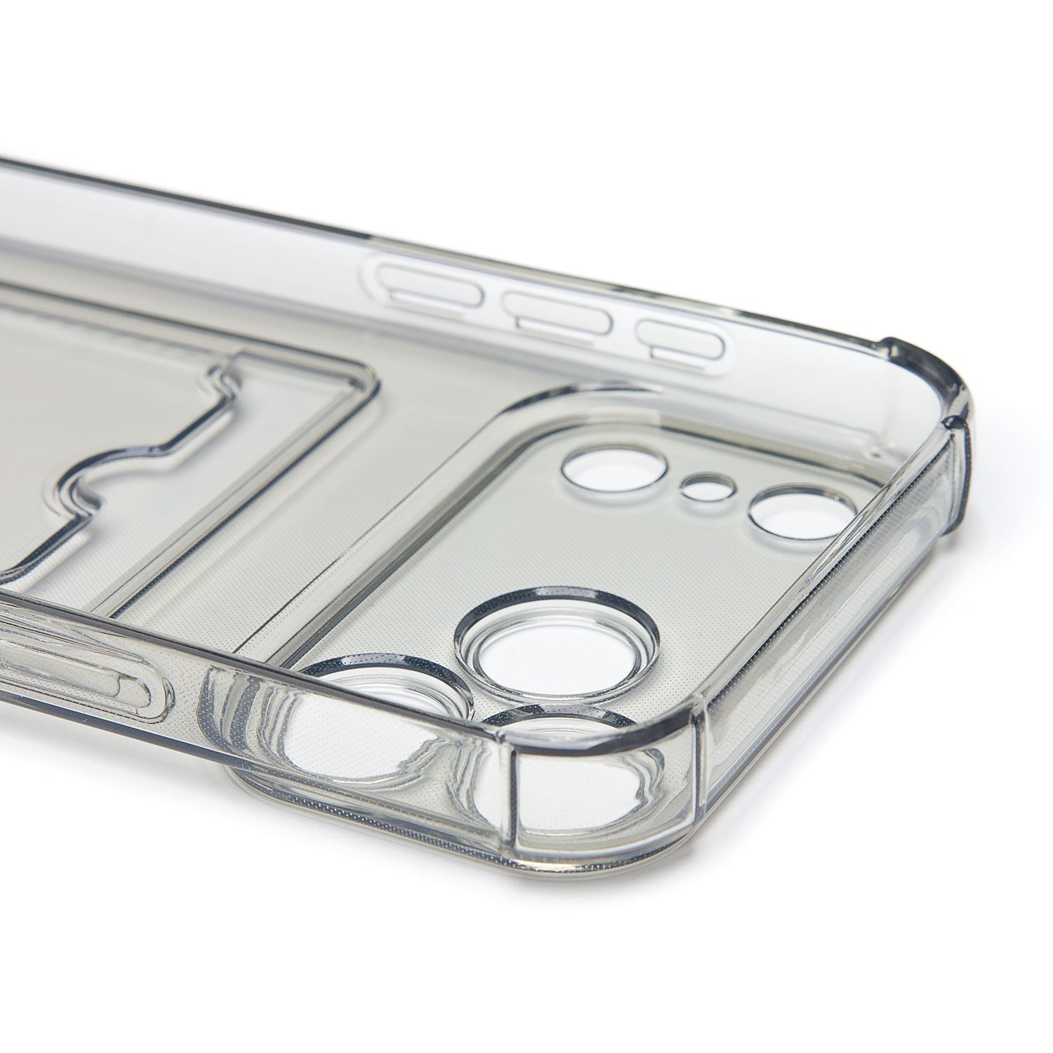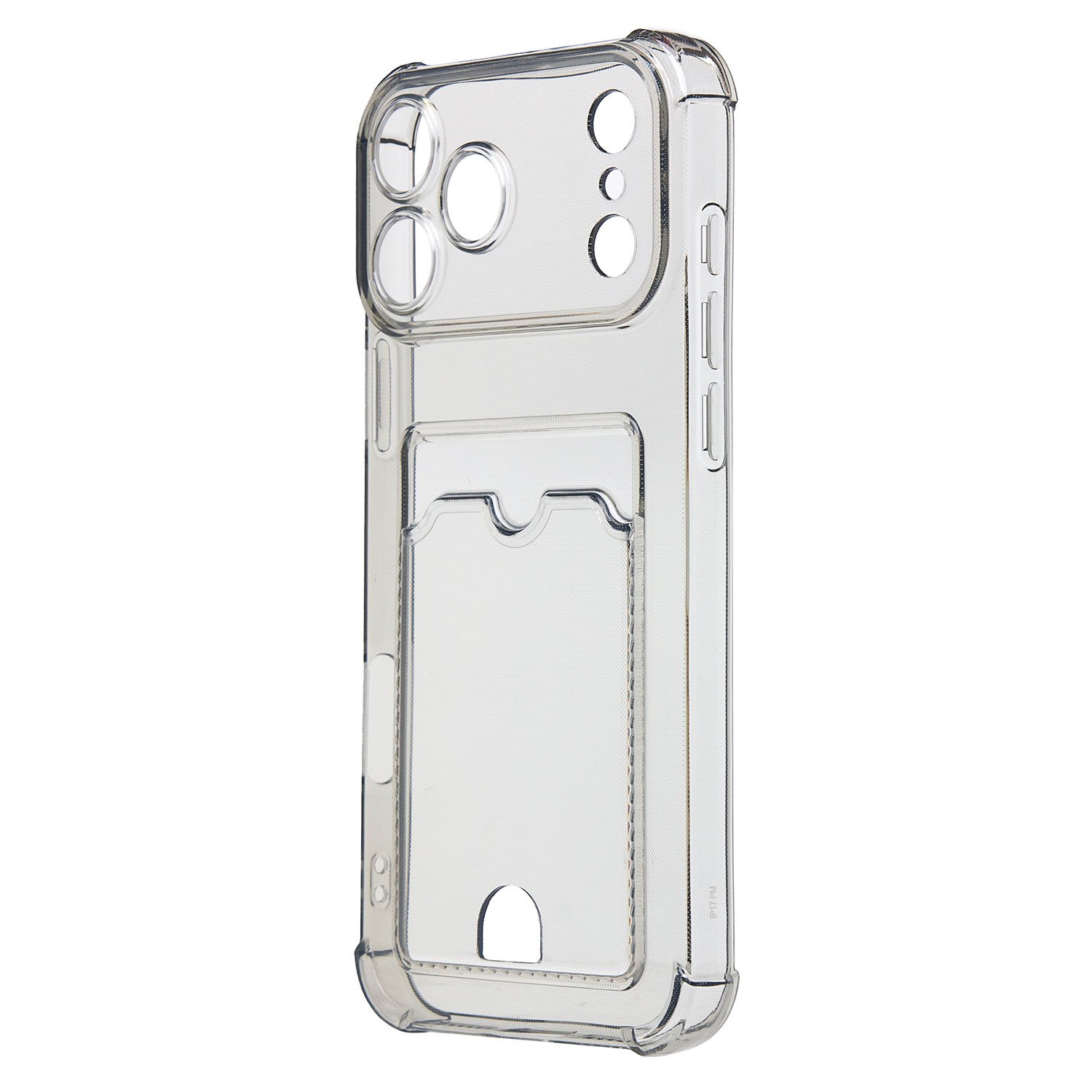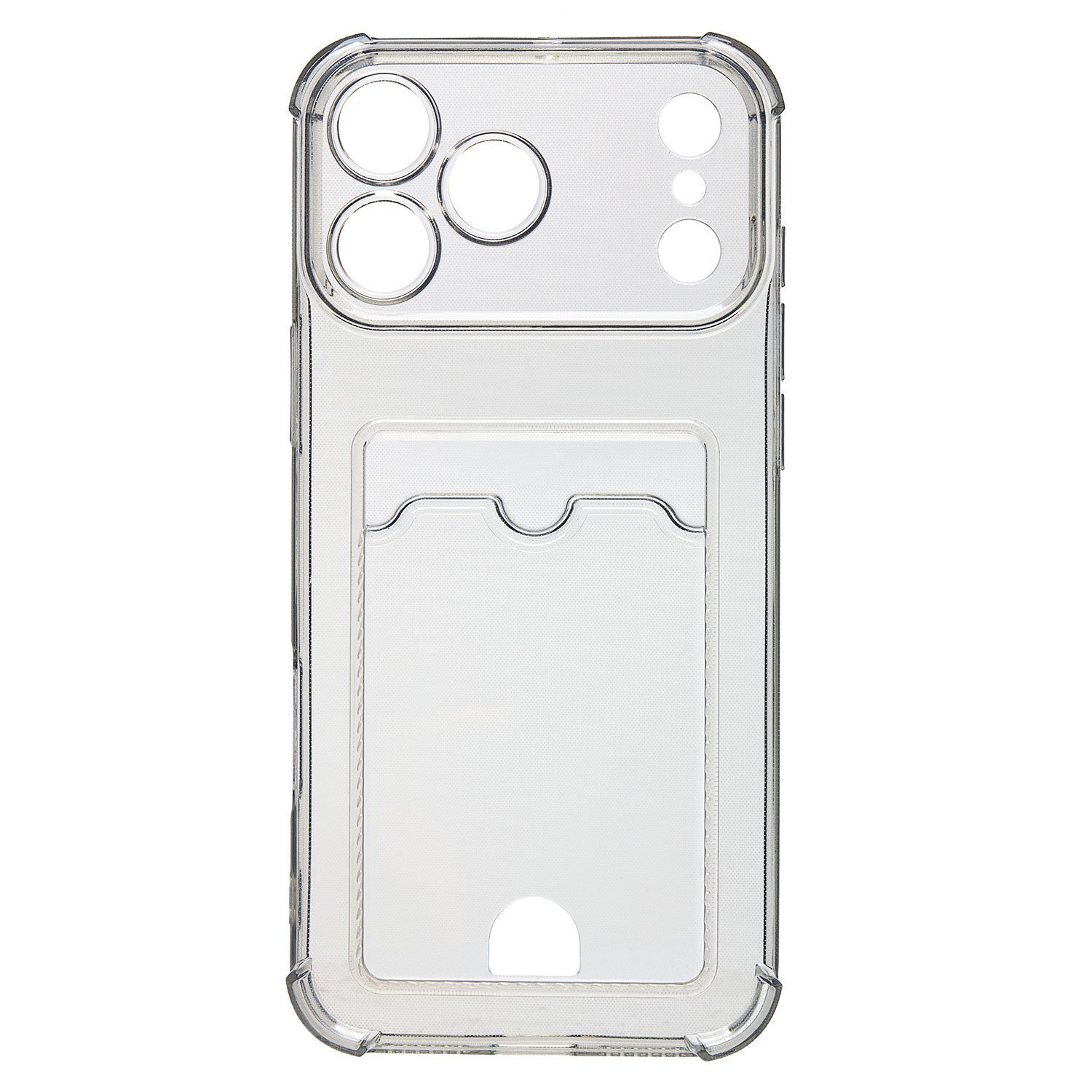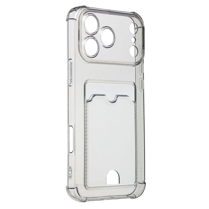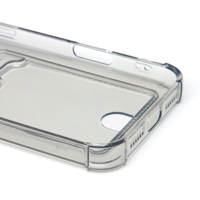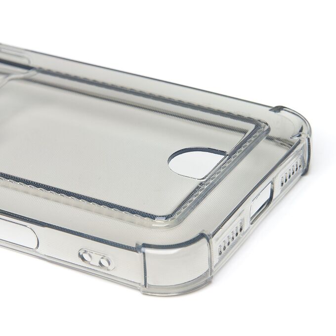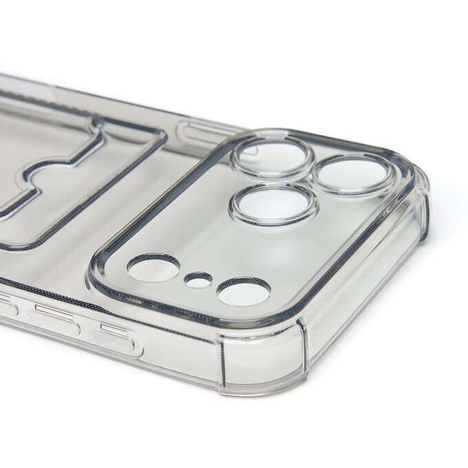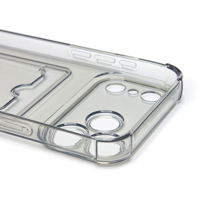 Противоударный силиконовый чехол с картхолдером, прозрачный – ХИТ продаж! Хотите защитить свой телефон и подчеркнуть его стильный дизайн? Этот чехол - именно то, что Вам нужно! Наш силиконовый чехол для телефона — это надежная защита Вашего устройства, сочетающая в себе уникальный стиль и функциональность. Прозрачный материал позволяет полностью наслаждаться дизайном Вашего телефона. Наличие картхолдера позволит Вам удобно хранить кредитные карты или деньги, не беспокоясь о том, что они потеряются. Усиленные углы и защита камеры обеспечат дополнительную защиту от падений и ударов. Кроме того, на данном чехле есть специальный вырез на кармашке для удобного доступа к карточкам. Этот вырез имеет оптимальный размер, что позволяет быстро и легко доставать карты одним движением пальца. Таким образом, наш чехол сочетает в себе не только защиту для телефона, но и удобство для владельца. Если тебе нужна надежная защита для своего телефона, то наш новый чехол - отличный выбор!
