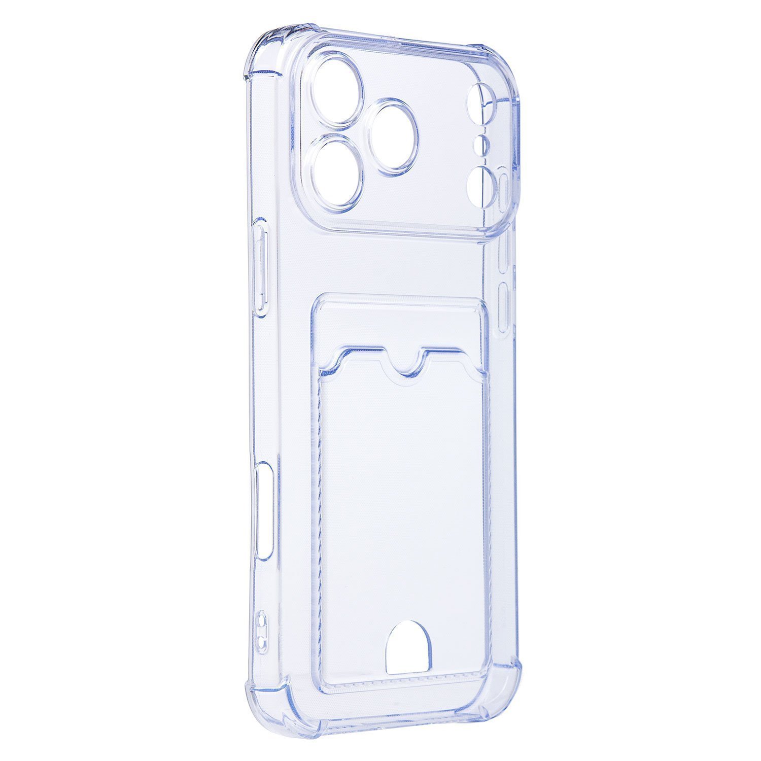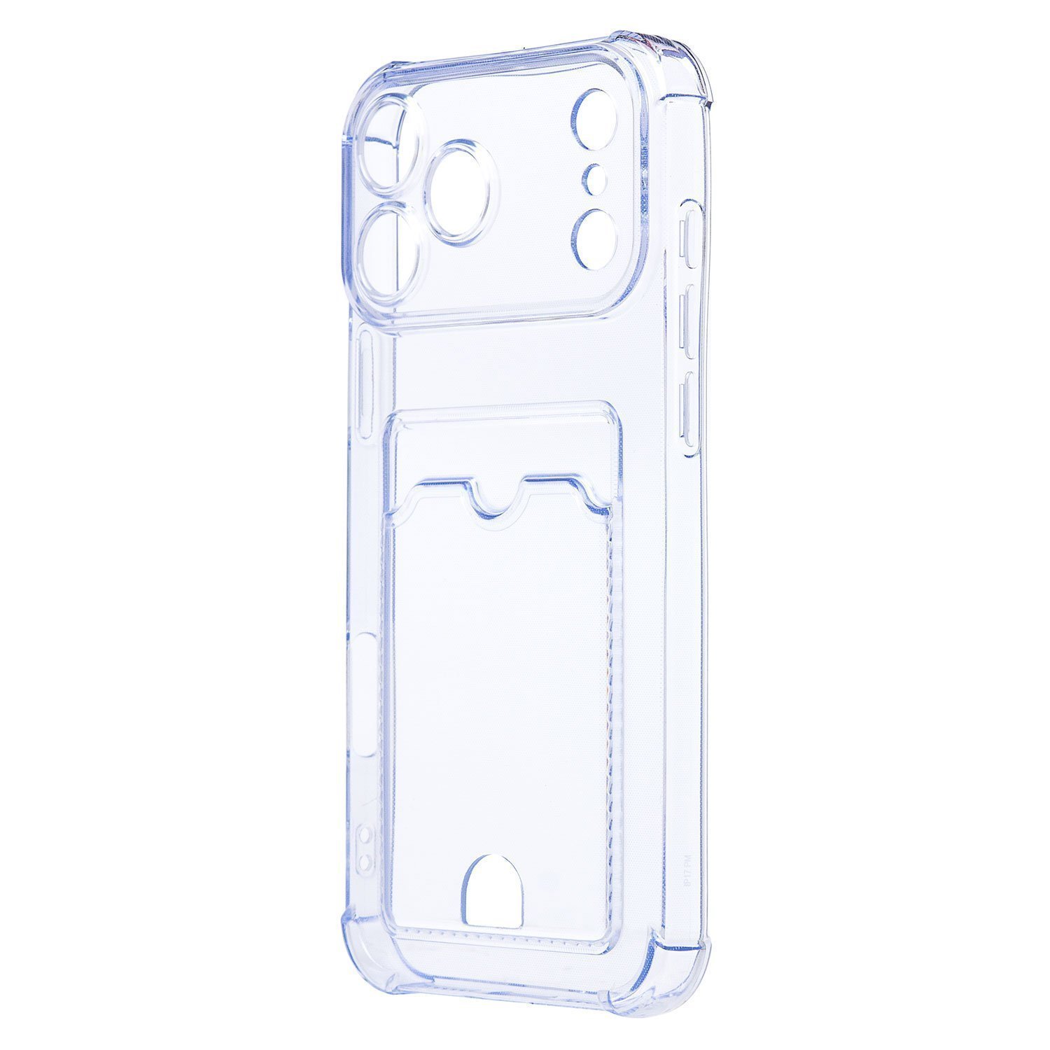 Противоударный силиконовый чехол с картхолдером, прозрачный – ХИТ продаж! Хотите защитить свой телефон и подчеркнуть его стильный дизайн? Этот чехол - именно то, что Вам нужно! Наш силиконовый чехол для телефона — это надежная защита Вашего устройства, сочетающая в себе уникальный стиль и функциональность. Прозрачный материал позволяет полностью наслаждаться дизайном Вашего телефона. Наличие картхолдера позволит Вам удобно хранить кредитные карты или деньги, не беспокоясь о том, что они потеряются. Усиленные углы и защита камеры обеспечат дополнительную защиту от падений и ударов. Кроме того, на данном чехле есть специальный вырез на кармашке для удобного доступа к карточкам. Этот вырез имеет оптимальный размер, что позволяет быстро и легко доставать карты одним движением пальца. Таким образом, наш чехол сочетает в себе не только защиту для телефона, но и удобство для владельца. Если тебе нужна надежная защита для своего телефона, то наш новый чехол - отличный выбор!