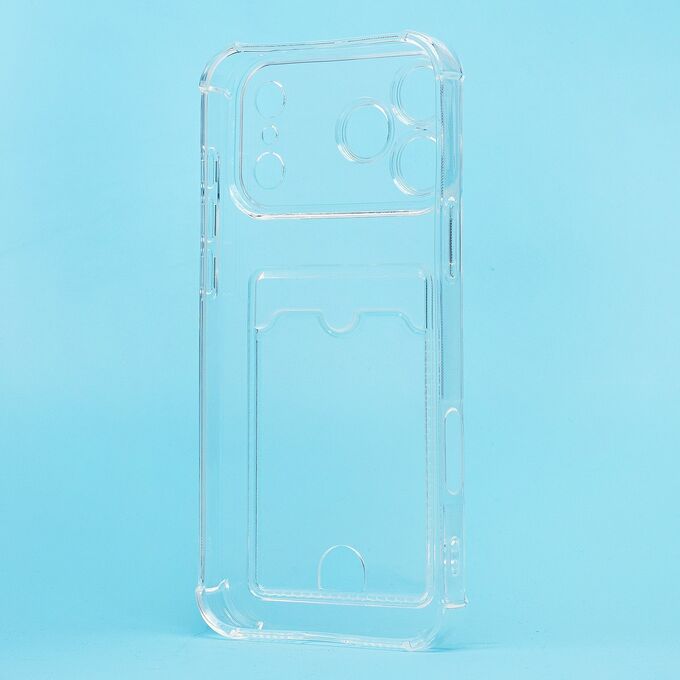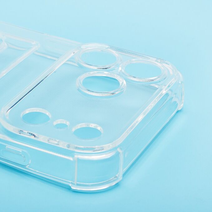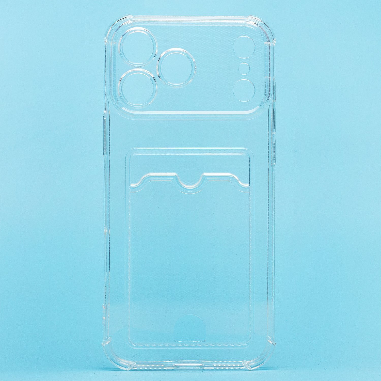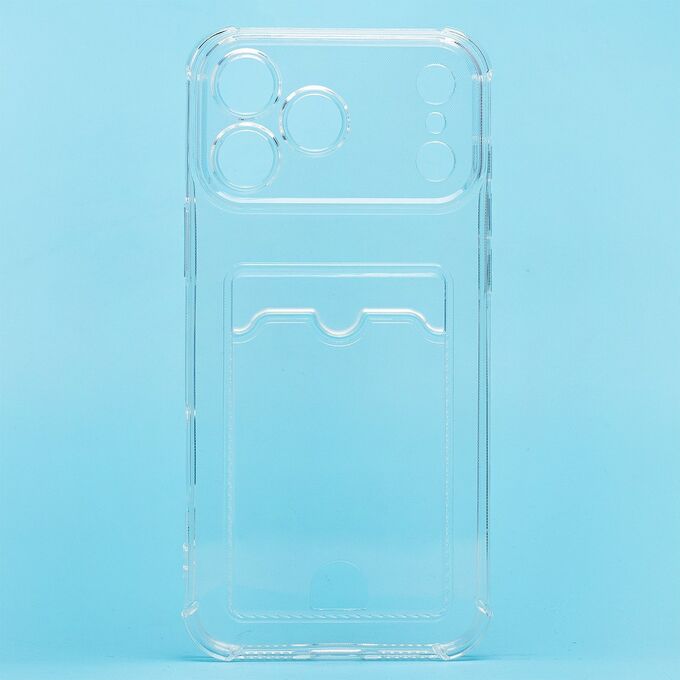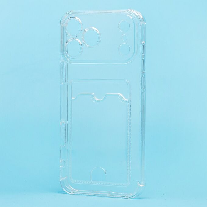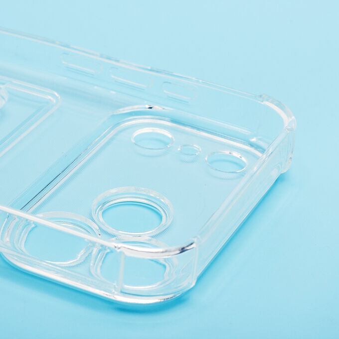 Противоударный силиконовый чехол с картхолдером, прозрачный – ХИТ продаж! Хотите защитить свой телефон и подчеркнуть его стильный дизайн? Этот чехол - именно то, что Вам нужно! Наш силиконовый чехол для телефона — это надежная защита Вашего устройства, сочетающая в себе уникальный стиль и функциональность. Прозрачный материал позволяет полностью наслаждаться дизайном Вашего телефона. Наличие картхолдера позволит Вам удобно хранить кредитные карты или деньги, не беспокоясь о том, что они потеряются. Усиленные углы и защита камеры обеспечат дополнительную защиту от падений и ударов. Кроме того, на данном чехле есть специальный вырез на кармашке для удобного доступа к карточкам. Этот вырез имеет оптимальный размер, что позволяет быстро и легко доставать карты одним движением пальца. Таким образом, наш чехол сочетает в себе не только защиту для телефона, но и удобство для владельца. Если тебе нужна надежная защита для своего телефона, то наш новый чехол - отличный выбор!