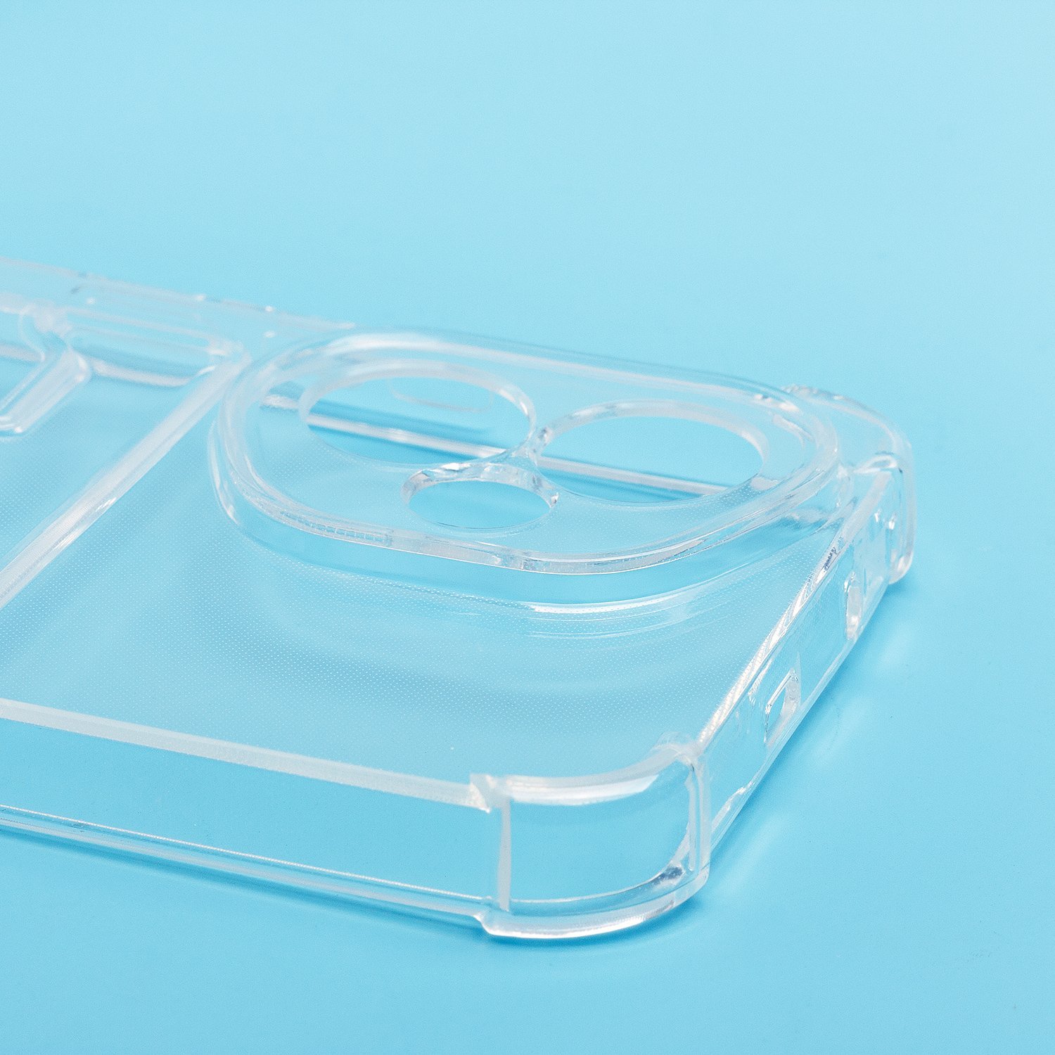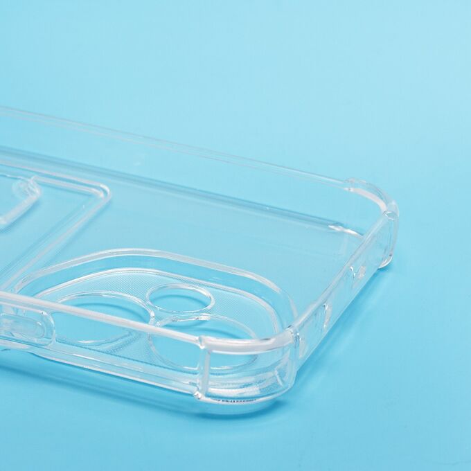 Противоударный силиконовый чехол с картхолдером, прозрачный – ХИТ продаж! Хотите защитить свой телефон и подчеркнуть его стильный дизайн? Этот чехол - именно то, что Вам нужно! Наш силиконовый чехол для телефона — это надежная защита Вашего устройства, сочетающая в себе уникальный стиль и функциональность. Прозрачный материал позволяет полностью наслаждаться дизайном Вашего телефона. Наличие картхолдера позволит Вам удобно хранить кредитные карты или деньги, не беспокоясь о том, что они потеряются. Усиленные углы и защита камеры обеспечат дополнительную защиту от падений и ударов. Кроме того, на данном чехле есть специальный вырез на кармашке для удобного доступа к карточкам. Этот вырез имеет оптимальный размер, что позволяет быстро и легко доставать карты одним движением пальца. Таким образом, наш чехол сочетает в себе не только защиту для телефона, но и удобство для владельца. Если тебе нужна надежная защита для своего телефона, то наш новый чехол - отличный выбор!