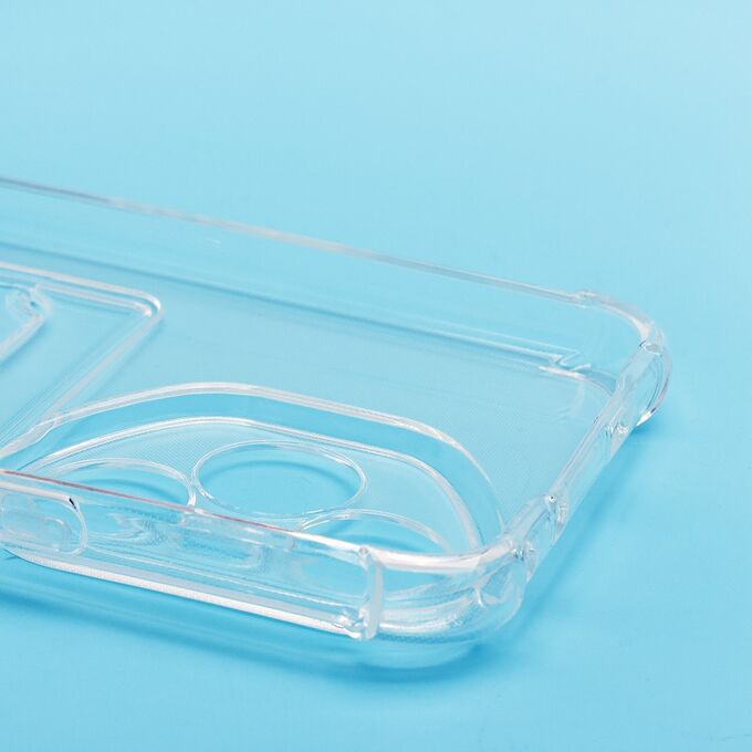 Противоударный силиконовый чехол с картхолдером, прозрачный – ХИТ продаж! Хотите защитить свой телефон и подчеркнуть его стильный дизайн? Этот чехол - именно то, что Вам нужно! Наш силиконовый чехол для телефона — это надежная защита Вашего устройства, сочетающая в себе уникальный стиль и функциональность. Прозрачный материал позволяет полностью наслаждаться дизайном Вашего телефона. Наличие картхолдера позволит Вам удобно хранить кредитные карты или деньги, не беспокоясь о том, что они потеряются. Усиленные углы и защита камеры обеспечат дополнительную защиту от падений и ударов. Кроме того, на данном чехле есть специальный вырез на кармашке для удобного доступа к карточкам. Этот вырез имеет оптимальный размер, что позволяет быстро и легко доставать карты одним движением пальца. Таким образом, наш чехол сочетает в себе не только защиту для телефона, но и удобство для владельца. Если тебе нужна надежная защита для своего телефона, то наш новый чехол - отличный выбор!
