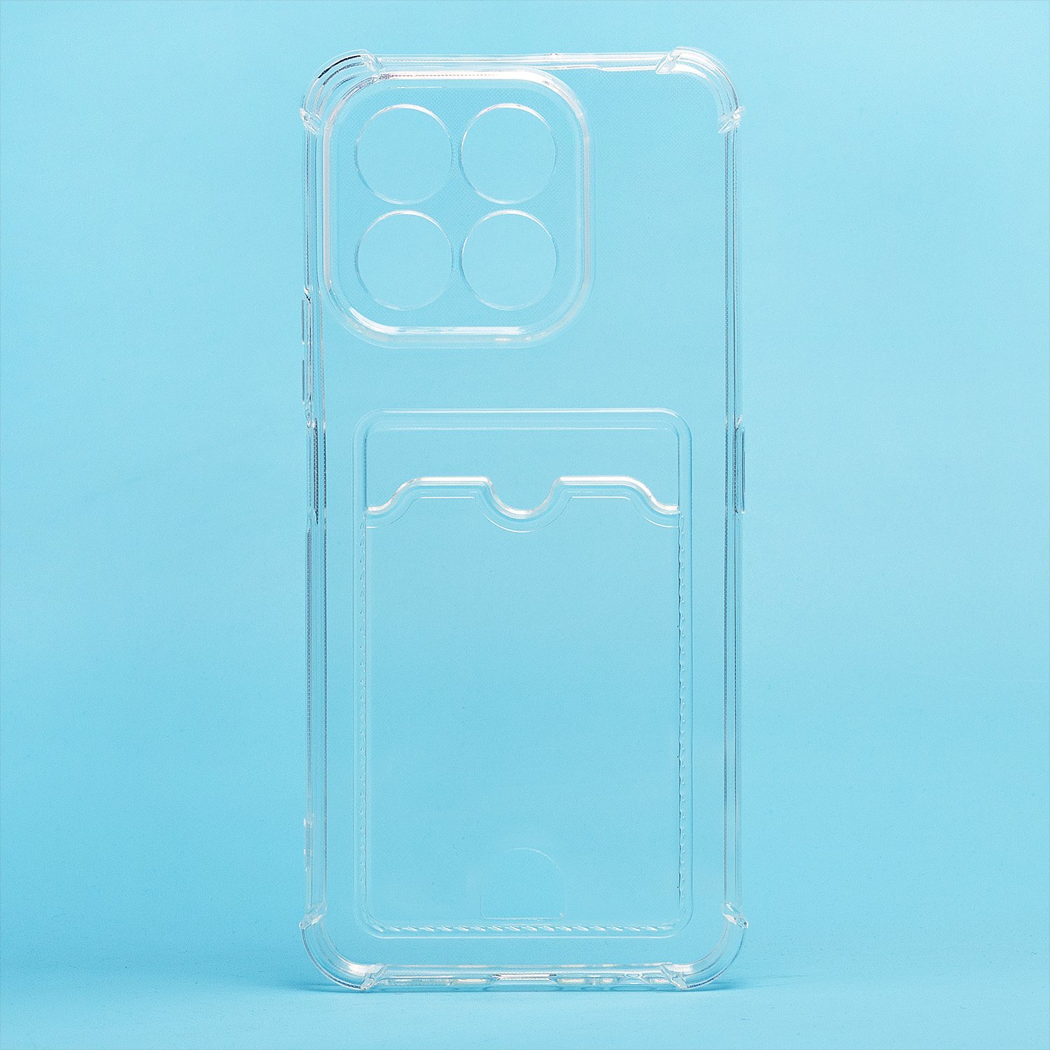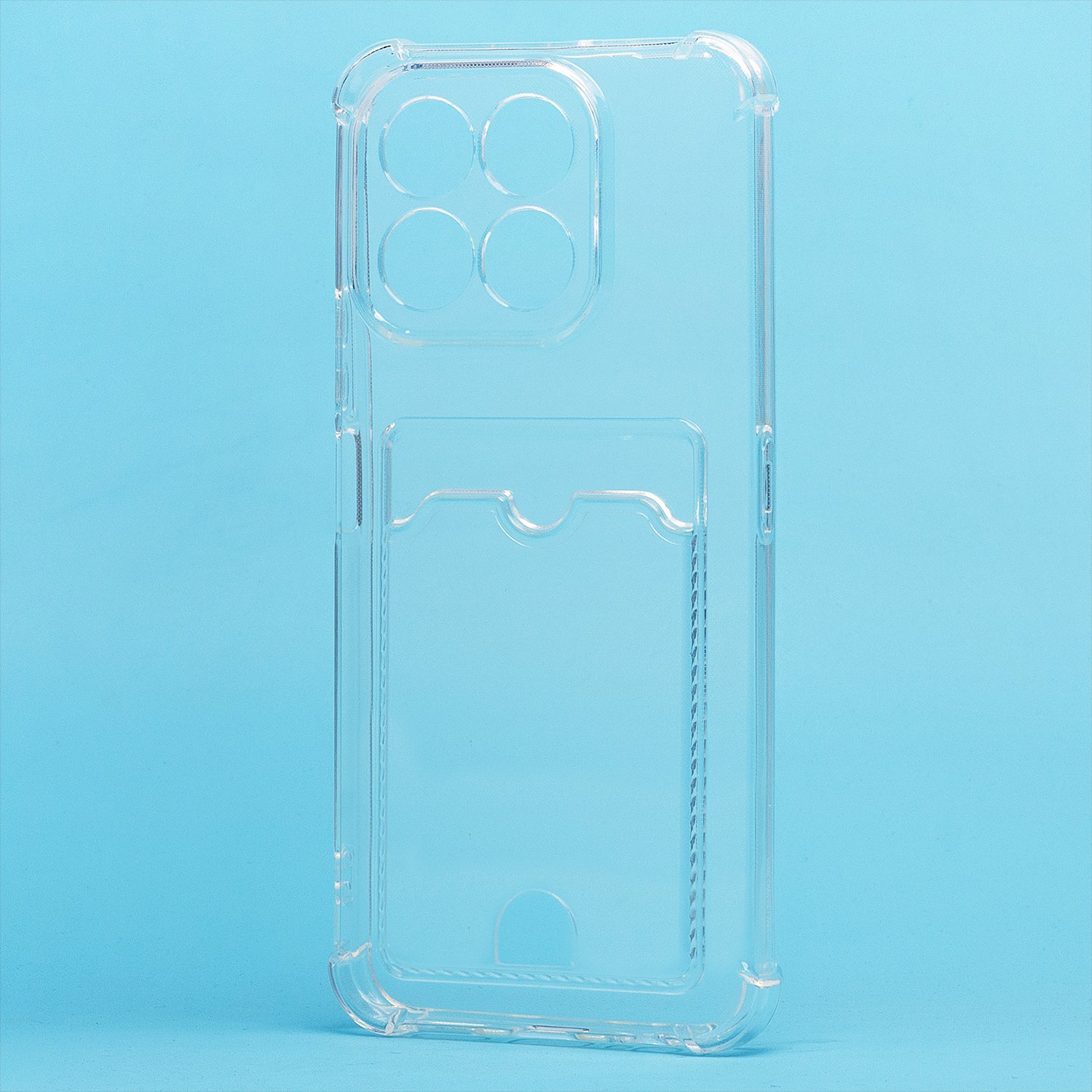 Противоударный силиконовый чехол с картхолдером, прозрачный – ХИТ продаж! Хотите защитить свой телефон и подчеркнуть его стильный дизайн? Этот чехол - именно то, что Вам нужно! Наш силиконовый чехол для телефона — это надежная защита Вашего устройства, сочетающая в себе уникальный стиль и функциональность. Прозрачный материал позволяет полностью наслаждаться дизайном Вашего телефона. Наличие картхолдера позволит Вам удобно хранить кредитные карты или деньги, не беспокоясь о том, что они потеряются. Усиленные углы и защита камеры обеспечат дополнительную защиту от падений и ударов. Кроме того, на данном чехле есть специальный вырез на кармашке для удобного доступа к карточкам. Этот вырез имеет оптимальный размер, что позволяет быстро и легко доставать карты одним движением пальца. Таким образом, наш чехол сочетает в себе не только защиту для телефона, но и удобство для владельца. Если тебе нужна надежная защита для своего телефона, то наш новый чехол - отличный выбор!
