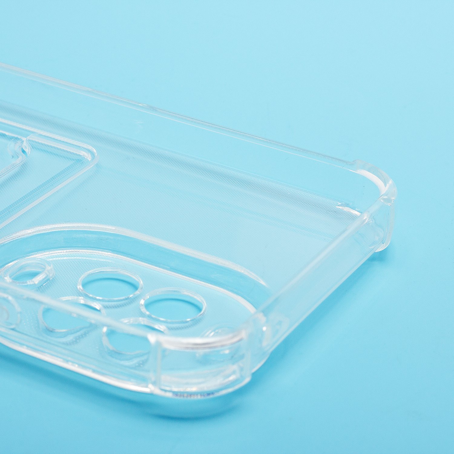 Противоударный силиконовый чехол с картхолдером, прозрачный – ХИТ продаж! Хотите защитить свой телефон и подчеркнуть его стильный дизайн? Этот чехол - именно то, что Вам нужно! Наш силиконовый чехол для телефона — это надежная защита Вашего устройства, сочетающая в себе уникальный стиль и функциональность. Прозрачный материал позволяет полностью наслаждаться дизайном Вашего телефона. Наличие картхолдера позволит Вам удобно хранить кредитные карты или деньги, не беспокоясь о том, что они потеряются. Усиленные углы и защита камеры обеспечат дополнительную защиту от падений и ударов. Кроме того, на данном чехле есть специальный вырез на кармашке для удобного доступа к карточкам. Этот вырез имеет оптимальный размер, что позволяет быстро и легко доставать карты одним движением пальца. Таким образом, наш чехол сочетает в себе не только защиту для телефона, но и удобство для владельца. Если тебе нужна надежная защита для своего телефона, то наш новый чехол - отличный выбор!