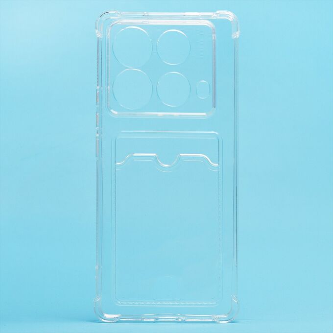 Противоударный силиконовый чехол с картхолдером, прозрачный – ХИТ продаж! Хотите защитить свой телефон и подчеркнуть его стильный дизайн? Этот чехол - именно то, что Вам нужно! Наш силиконовый чехол для телефона — это надежная защита Вашего устройства, сочетающая в себе уникальный стиль и функциональность. Прозрачный материал позволяет полностью наслаждаться дизайном Вашего телефона. Наличие картхолдера позволит Вам удобно хранить кредитные карты или деньги, не беспокоясь о том, что они потеряются. Усиленные углы и защита камеры обеспечат дополнительную защиту от падений и ударов. Кроме того, на данном чехле есть специальный вырез на кармашке для удобного доступа к карточкам. Этот вырез имеет оптимальный размер, что позволяет быстро и легко доставать карты одним движением пальца. Таким образом, наш чехол сочетает в себе не только защиту для телефона, но и удобство для владельца. Если тебе нужна надежная защита для своего телефона, то наш новый чехол - отличный выбор!