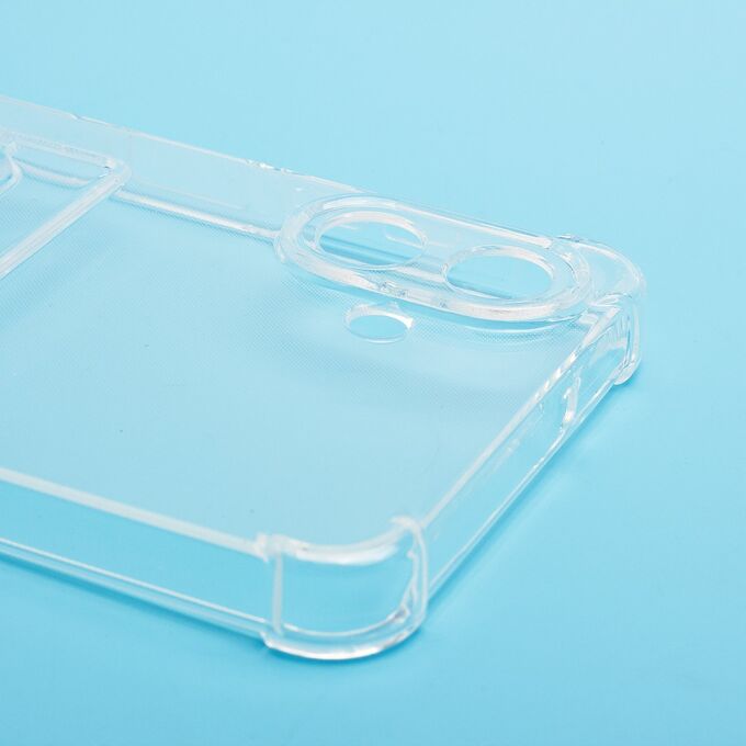 Противоударный силиконовый чехол с картхолдером, прозрачный – ХИТ продаж! Хотите защитить свой телефон и подчеркнуть его стильный дизайн? Этот чехол - именно то, что Вам нужно! Наш силиконовый чехол для телефона — это надежная защита Вашего устройства, сочетающая в себе уникальный стиль и функциональность. Прозрачный материал позволяет полностью наслаждаться дизайном Вашего телефона. Наличие картхолдера позволит Вам удобно хранить кредитные карты или деньги, не беспокоясь о том, что они потеряются. Усиленные углы и защита камеры обеспечат дополнительную защиту от падений и ударов. Кроме того, на данном чехле есть специальный вырез на кармашке для удобного доступа к карточкам. Этот вырез имеет оптимальный размер, что позволяет быстро и легко доставать карты одним движением пальца. Таким образом, наш чехол сочетает в себе не только защиту для телефона, но и удобство для владельца. Если тебе нужна надежная защита для своего телефона, то наш новый чехол - отличный выбор!