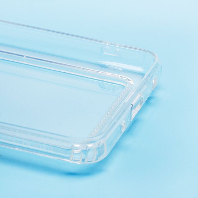 Противоударный силиконовый чехол с картхолдером, прозрачный – ХИТ продаж! Хотите защитить свой телефон и подчеркнуть его стильный дизайн? Этот чехол - именно то, что Вам нужно! Наш силиконовый чехол для телефона — это надежная защита Вашего устройства, сочетающая в себе уникальный стиль и функциональность. Прозрачный материал позволяет полностью наслаждаться дизайном Вашего телефона. Наличие картхолдера позволит Вам удобно хранить кредитные карты или деньги, не беспокоясь о том, что они потеряются. Усиленные углы и защита камеры обеспечат дополнительную защиту от падений и ударов. Кроме того, на данном чехле есть специальный вырез на кармашке для удобного доступа к карточкам. Этот вырез имеет оптимальный размер, что позволяет быстро и легко доставать карты одним движением пальца. Таким образом, наш чехол сочетает в себе не только защиту для телефона, но и удобство для владельца. Если тебе нужна надежная защита для своего телефона, то наш новый чехол - отличный выбор!