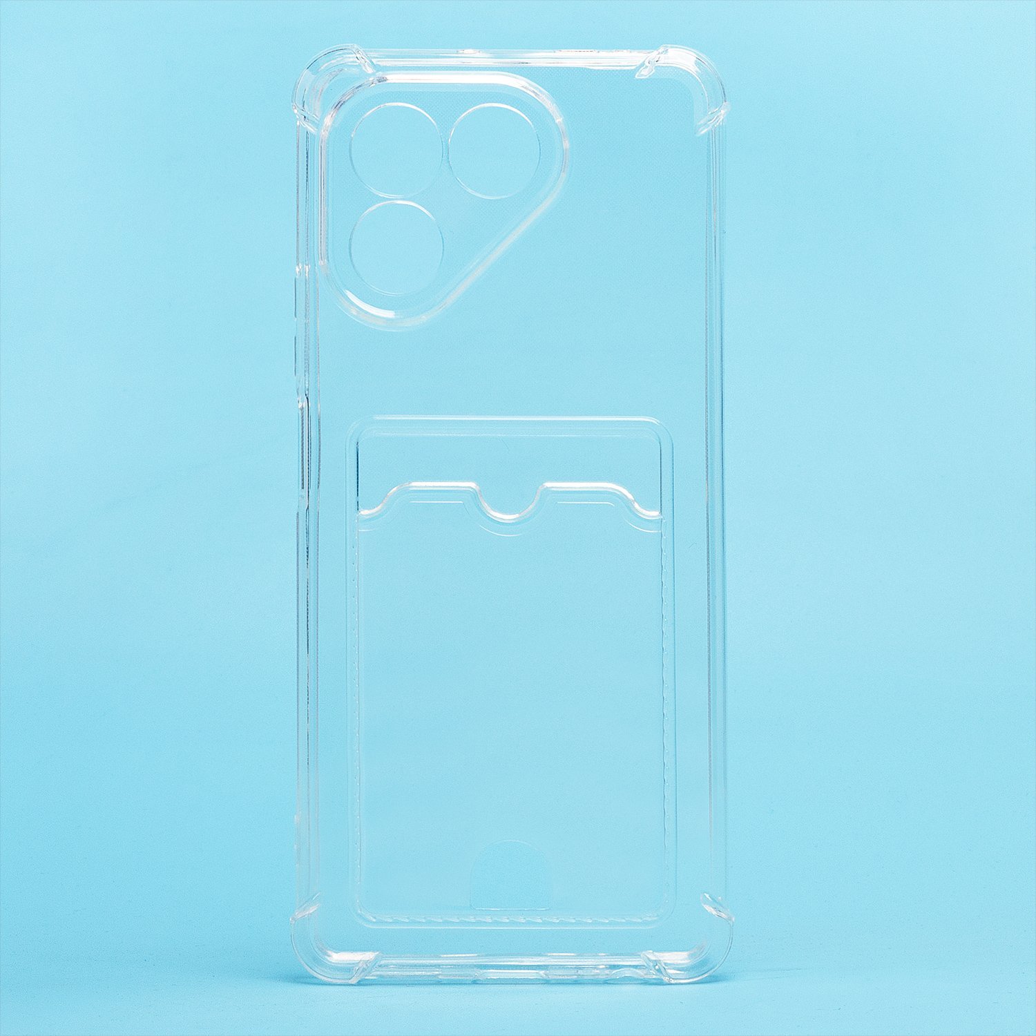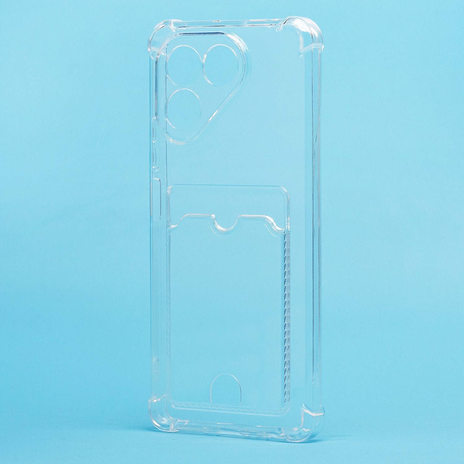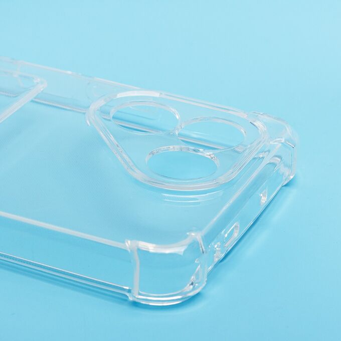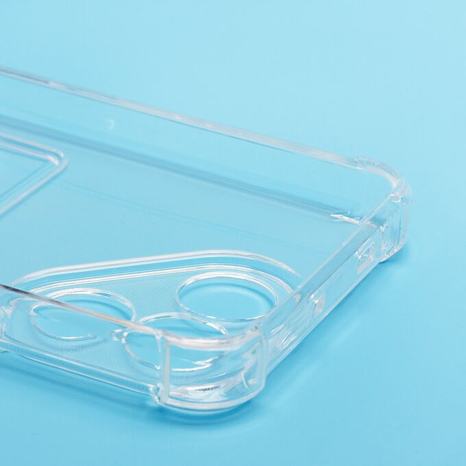 Противоударный силиконовый чехол с картхолдером, прозрачный – ХИТ продаж! Хотите защитить свой телефон и подчеркнуть его стильный дизайн? Этот чехол - именно то, что Вам нужно! Наш силиконовый чехол для телефона — это надежная защита Вашего устройства, сочетающая в себе уникальный стиль и функциональность. Прозрачный материал позволяет полностью наслаждаться дизайном Вашего телефона. Наличие картхолдера позволит Вам удобно хранить кредитные карты или деньги, не беспокоясь о том, что они потеряются. Усиленные углы и защита камеры обеспечат дополнительную защиту от падений и ударов. Кроме того, на данном чехле есть специальный вырез на кармашке для удобного доступа к карточкам. Этот вырез имеет оптимальный размер, что позволяет быстро и легко доставать карты одним движением пальца. Таким образом, наш чехол сочетает в себе не только защиту для телефона, но и удобство для владельца. Если тебе нужна надежная защита для своего телефона, то наш новый чехол - отличный выбор!