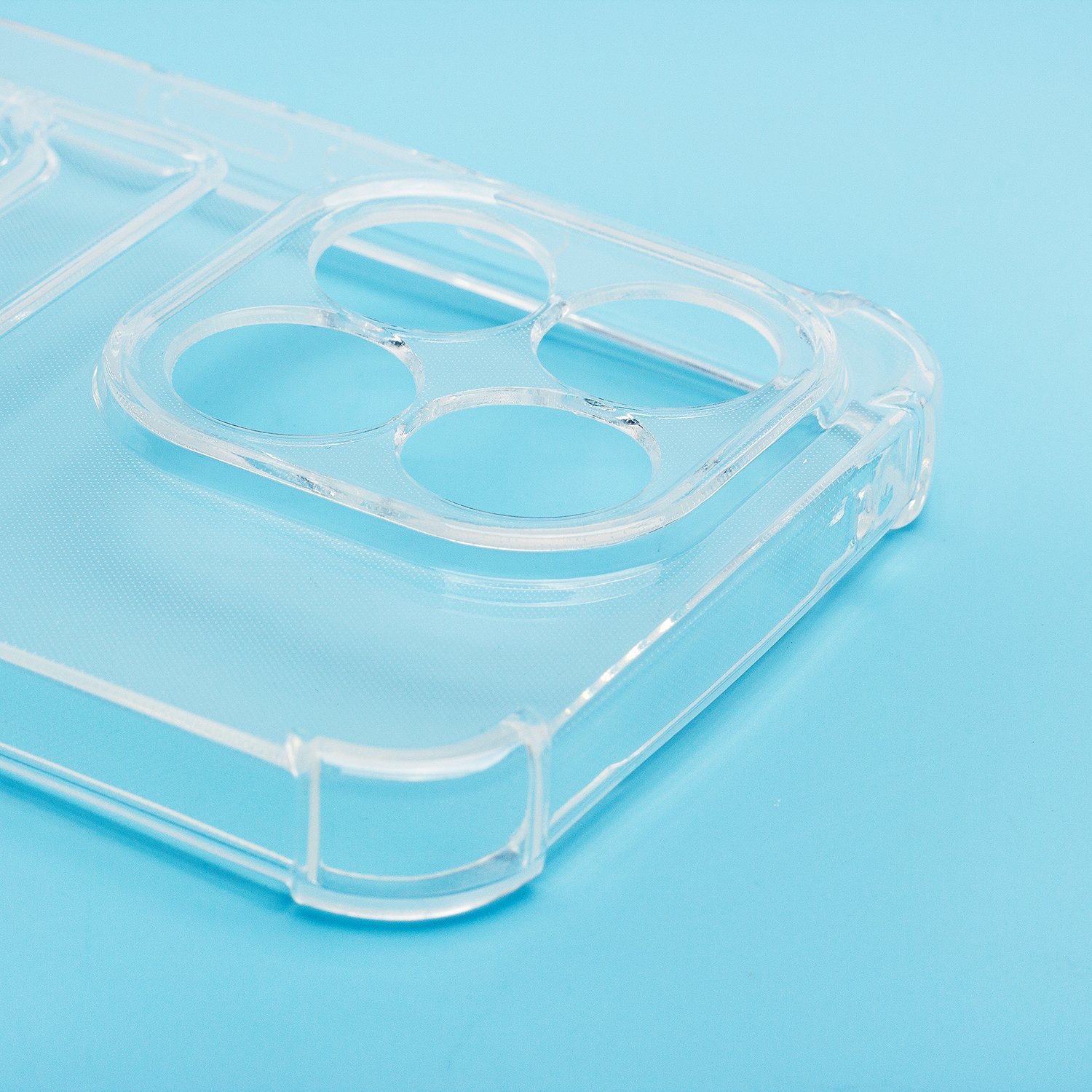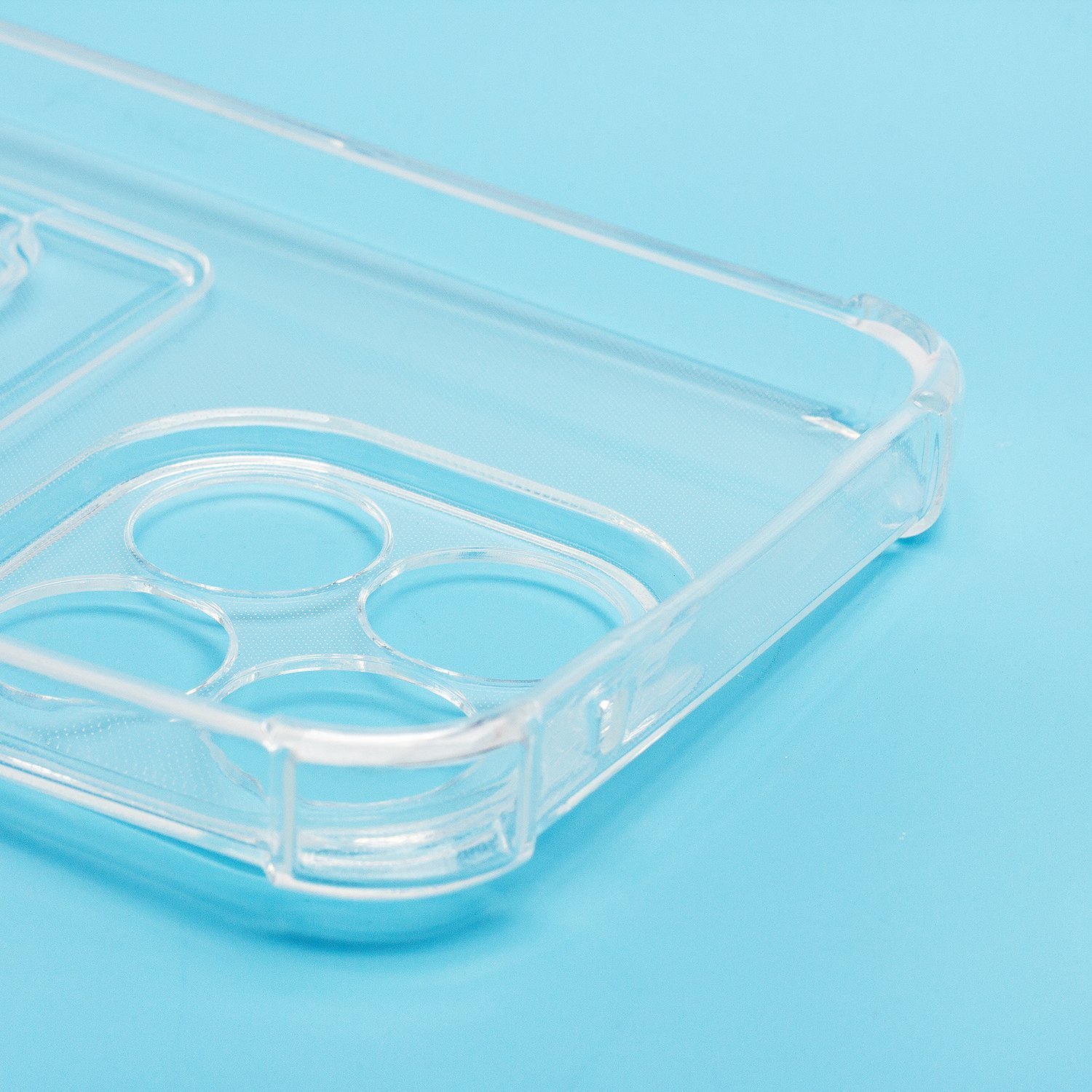 Противоударный силиконовый чехол с картхолдером, прозрачный – ХИТ продаж! Хотите защитить свой телефон и подчеркнуть его стильный дизайн? Этот чехол - именно то, что Вам нужно! Наш силиконовый чехол для телефона — это надежная защита Вашего устройства, сочетающая в себе уникальный стиль и функциональность. Прозрачный материал позволяет полностью наслаждаться дизайном Вашего телефона. Наличие картхолдера позволит Вам удобно хранить кредитные карты или деньги, не беспокоясь о том, что они потеряются. Усиленные углы и защита камеры обеспечат дополнительную защиту от падений и ударов. Кроме того, на данном чехле есть специальный вырез на кармашке для удобного доступа к карточкам. Этот вырез имеет оптимальный размер, что позволяет быстро и легко доставать карты одним движением пальца. Таким образом, наш чехол сочетает в себе не только защиту для телефона, но и удобство для владельца. Если тебе нужна надежная защита для своего телефона, то наш новый чехол - отличный выбор!
