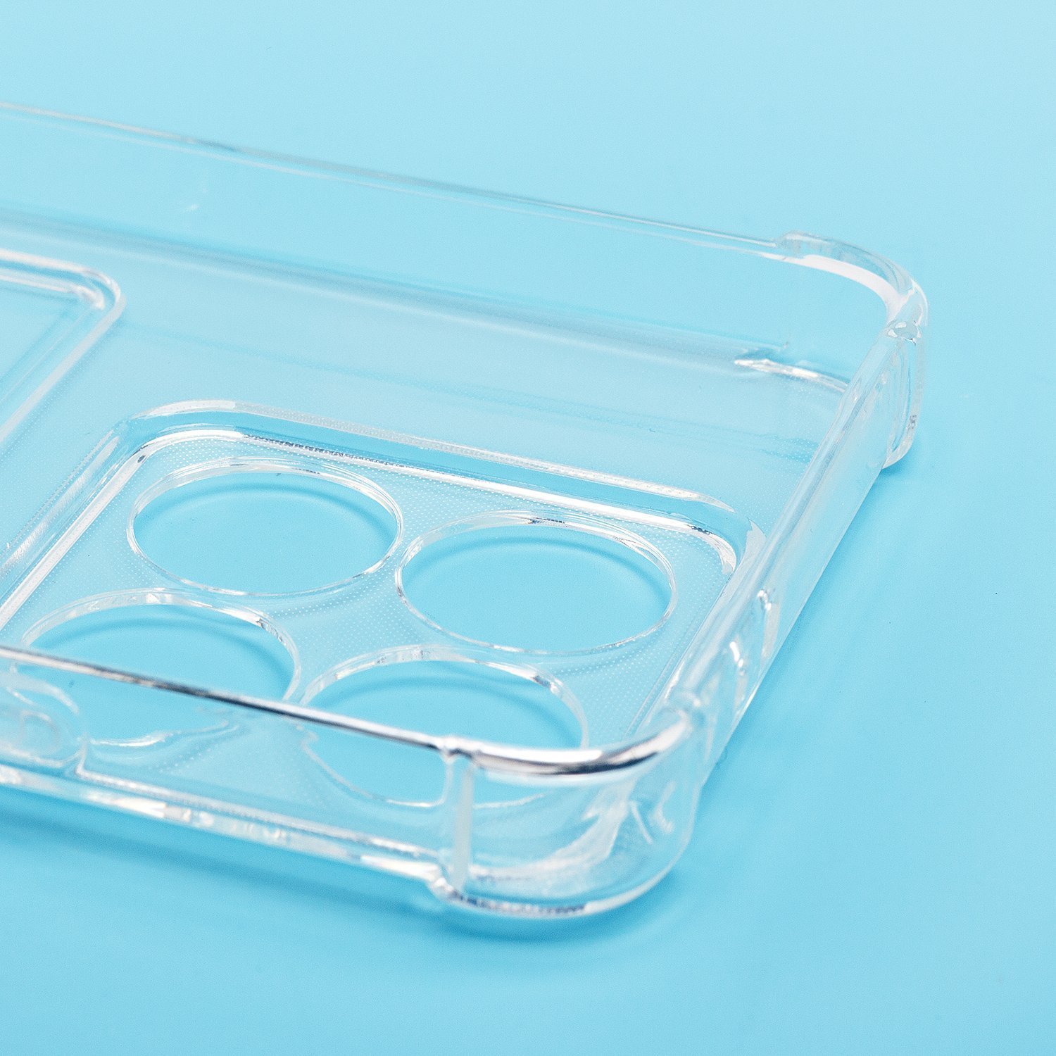Противоударный силиконовый чехол с картхолдером, прозрачный – ХИТ продаж! Хотите защитить свой телефон и подчеркнуть его стильный дизайн? Этот чехол - именно то, что Вам нужно! Наш силиконовый чехол для телефона — это надежная защита Вашего устройства, сочетающая в себе уникальный стиль и функциональность. Прозрачный материал позволяет полностью наслаждаться дизайном Вашего телефона. Наличие картхолдера позволит Вам удобно хранить кредитные карты или деньги, не беспокоясь о том, что они потеряются. Усиленные углы и защита камеры обеспечат дополнительную защиту от падений и ударов. Кроме того, на данном чехле есть специальный вырез на кармашке для удобного доступа к карточкам. Этот вырез имеет оптимальный размер, что позволяет быстро и легко доставать карты одним движением пальца. Таким образом, наш чехол сочетает в себе не только защиту для телефона, но и удобство для владельца. Если тебе нужна надежная защита для своего телефона, то наш новый чехол - отличный выбор!