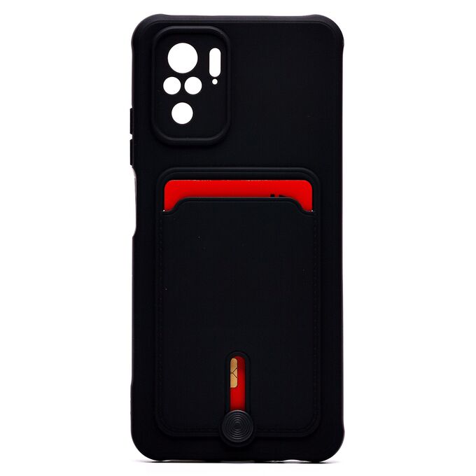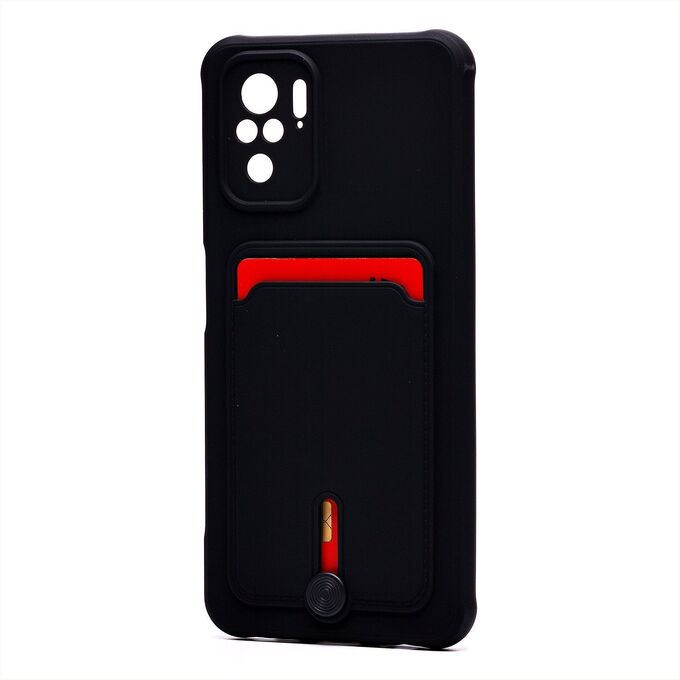 Защитный чехол с кармашком под карту SC304 для Xiaomi Redmi Note 10/Redmi Note 10S/ карман с выдвижным механизмом / черный