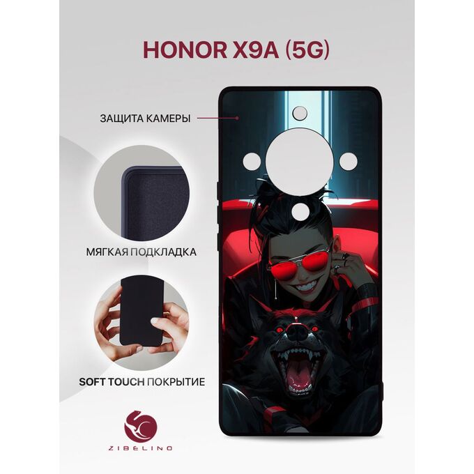 Чехол накладка Soft для Honor X9a (5G) с рисунком, с защитой камеры, с мягкой подкладкой из микрофибры, противоударный, черный с принтом ДЕВУШКА ПЁС (Хонор Х9а)
