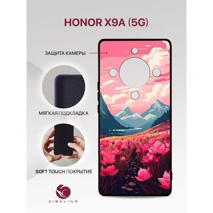 Чехол накладка Soft для Honor X9a (5G) с рисунком, с защитой камеры, с мягкой подкладкой из микрофибры, противоударный, черный с принтом РОЗОВЫЙ ЗАКАТ (Хонор Х9а)