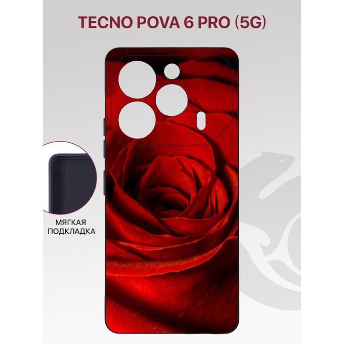 Чехол накладка Soft для Tecno Pova 6 Pro (5G), Pova 6 (4G) с рисунком, с защитой камеры, с мягкой подкладкой из микрофибры, противоударный, черный с принтом БУТОН РОЗЫ (Техно Пова 6 Про)