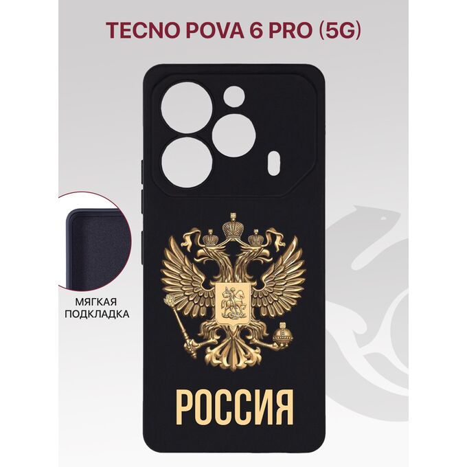 Чехол накладка Soft для Tecno Pova 6 Pro (5G), Pova 6 (4G) с рисунком, с защитой камеры, с мягкой подкладкой из микрофибры, противоударный, черный с принтом РОССИЯ ОРЁЛ (Техно Пова 6 Про)