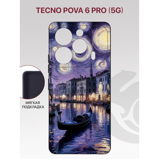Чехол накладка Soft для Tecno Pova 6 Pro (5G), Pova 6 (4G) с рисунком, с защитой камеры, с мягкой подкладкой из микрофибры, противоударный, черный с принтом ВАН ГОГ НА ВОЛНАХ (Техно Пова 6 Про)