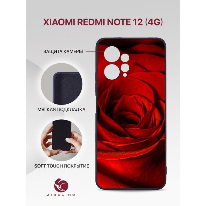 Чехол накладка Soft для Xiaomi Redmi Note 12 (4G) с рисунком, с защитой камеры, с мягкой подкладкой из микрофибры, противоударный, черный с принтом БУТОН РОЗЫ (Ксиоми Редми Нот 12)