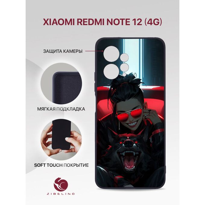 Чехол накладка Soft для Xiaomi Redmi Note 12 (4G) с рисунком, с защитой камеры, с мягкой подкладкой из микрофибры, противоударный, черный с принтом ДЕВУШКА ПЁС (Ксиоми Редми Нот 12)