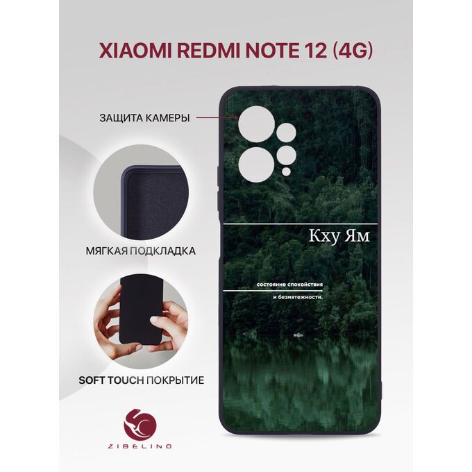 Чехол накладка Soft для Xiaomi Redmi Note 12 (4G) с рисунком, с защитой камеры, с мягкой подкладкой из микрофибры, противоударный, черный с принтом КХУ ЯМ (Ксиоми Редми Нот 12)