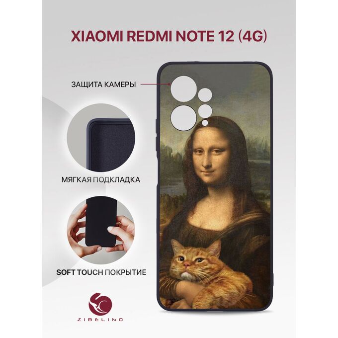 Чехол накладка Soft для Xiaomi Redmi Note 12 (4G) с рисунком, с защитой камеры, с мягкой подкладкой из микрофибры, противоударный, черный с принтом КОТОЛИЗА (Ксиоми Редми Нот 12)