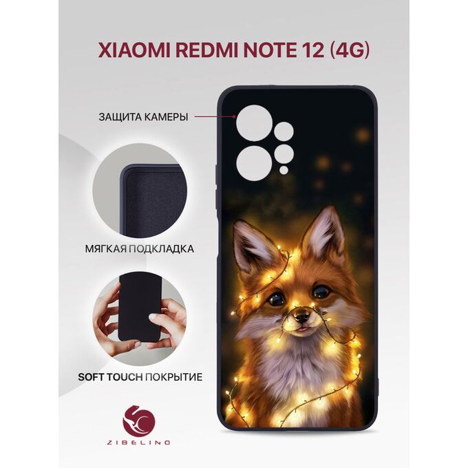 Чехол накладка Soft для Xiaomi Redmi Note 12 (4G) с рисунком, с защитой камеры, с мягкой подкладкой из микрофибры, противоударный, черный с принтом ЛИСА ОГНИ (Ксиоми Редми Нот 12)