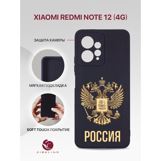 Чехол накладка Soft для Xiaomi Redmi Note 12 (4G) с рисунком, с защитой камеры, с мягкой подкладкой из микрофибры, противоударный, черный с принтом РОССИЯ ОРЁЛ (Ксиоми Редми Нот 12)
