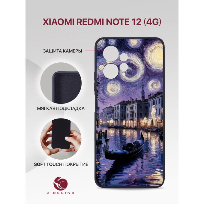 Чехол накладка Soft для Xiaomi Redmi Note 12 (4G) с рисунком, с защитой камеры, с мягкой подкладкой из микрофибры, противоударный, черный с принтом ВАН ГОГ НА ВОЛНАХ (Ксиоми Редми Нот 12)
