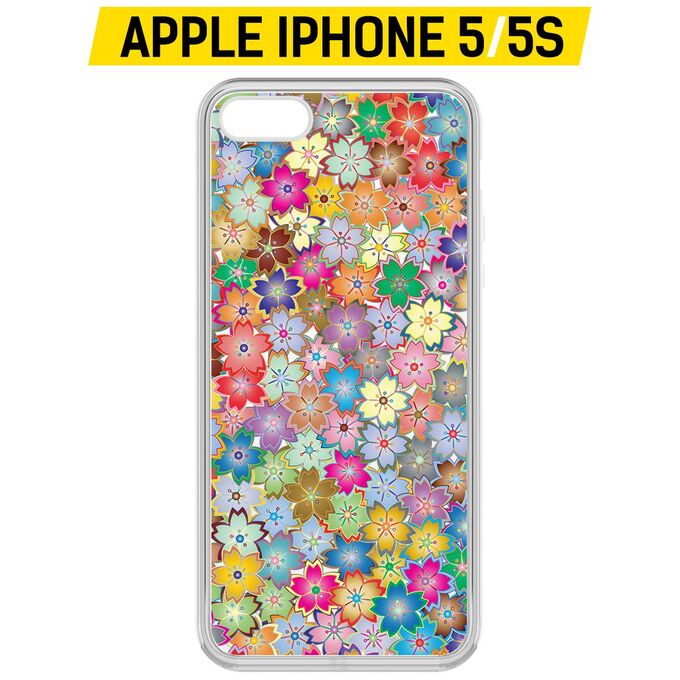 Чехол-накладка Clear Case Цветочный паттерн 4 для iPhone 5/5s надежно защитит Ваш смартфон от повреждений, загрязнений, пыли и царапин. В руке не скользит, впритык садится на корпус, не изменяя габариты смартфона, точное соответствие всем разъемам и кнопкам, портам и камерам. Чехол-накладку Clear Case можно использовать с беспроводной зарядкой. Чехол выполнен из качественного, мягкого на ощупь силикона, одновременно легкий и прочный, гибкий и эластичный.