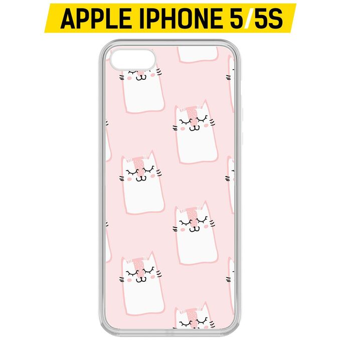 Чехол-накладка Clear Case Котики паттерн для iPhone 5/5s надежно защитит Ваш смартфон от повреждений, загрязнений, пыли и царапин. В руке не скользит, впритык садится на корпус, не изменяя габариты смартфона, точное соответствие всем разъемам и кнопкам, портам и камерам. Чехол-накладку Clear Case можно использовать с беспроводной зарядкой. Чехол выполнен из качественного, мягкого на ощупь силикона, одновременно легкий и прочный, гибкий и эластичный.
