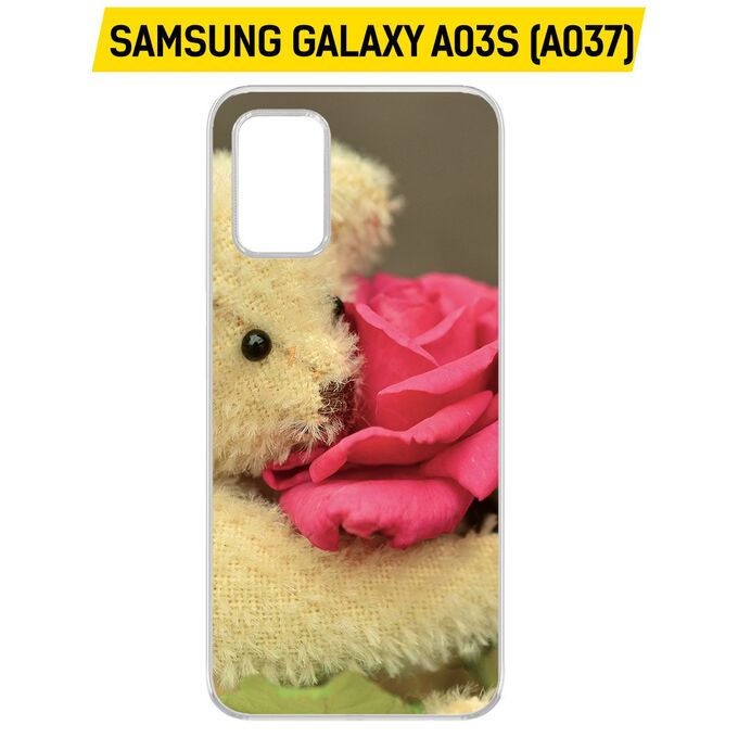 Чехол-накладка Clear Case Медвежонок с розой для Samsung Galaxy A03s (A037)